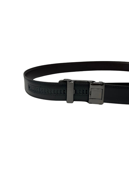 Modrý kožený společenský opasek 30 mm s přezkou automat