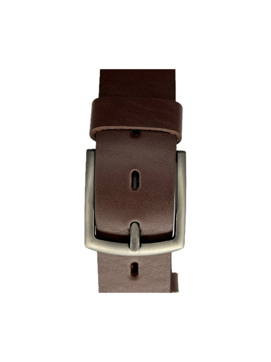 Pánský kožený opasek TORO - hnědý, matná stříbrná spona