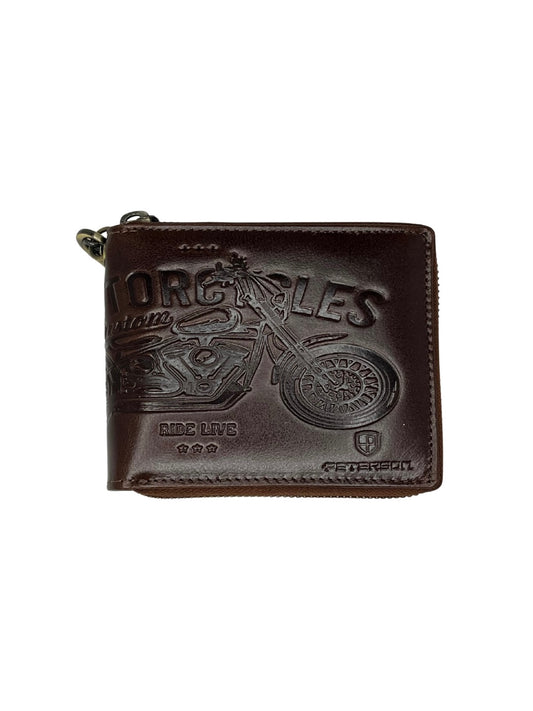 Motorkářská kožená peněženka s řetězem a funkcí RFID