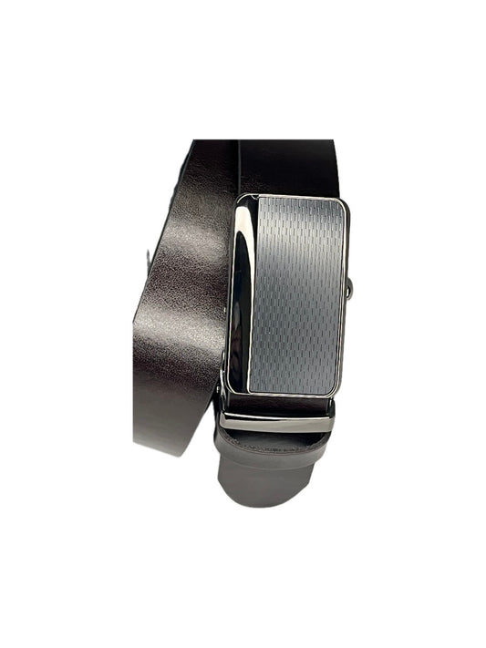 Pánský společenský tmavě hnědý kožený opasek se sponou automat