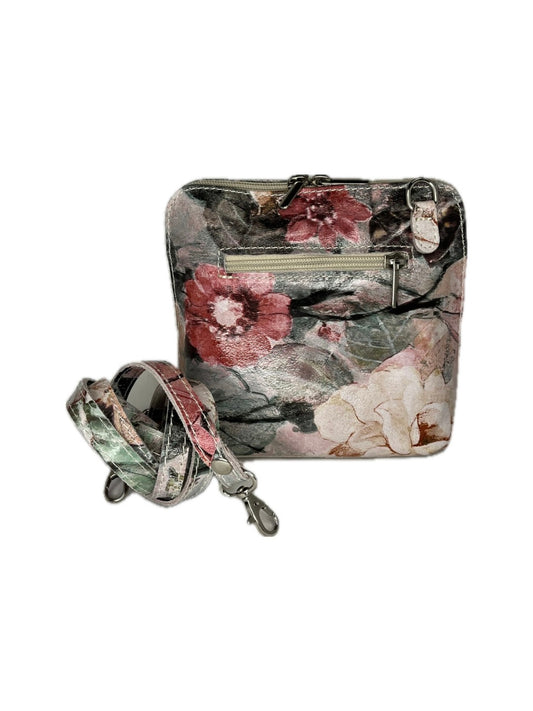 Malá kožená kabelka VERA PELLE - crossbody s květinovým vzorem