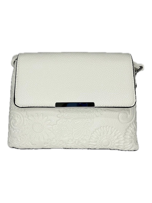 Malá bílá crossbody s klopnou a květinovým vzorem
