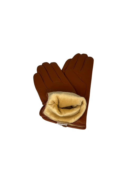 Dámské kožené rukavice zateplené mikroplyšem v barvě koňak