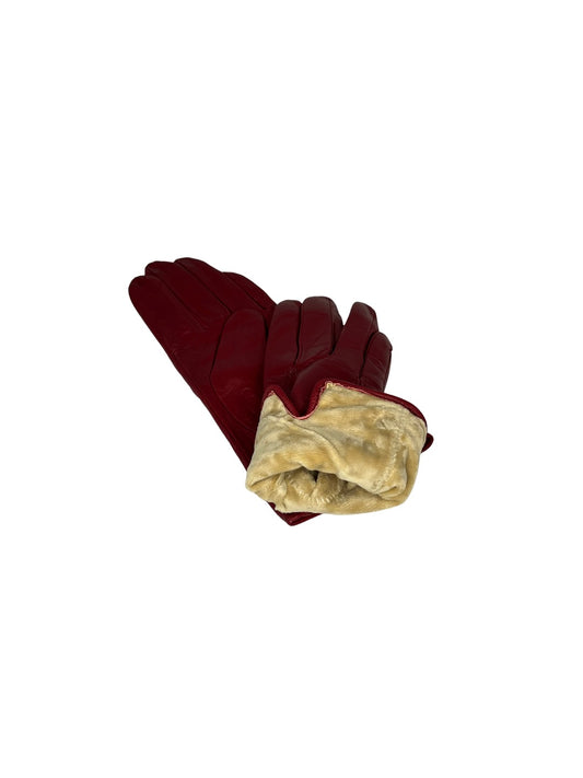 Dámské kožené rukavice zateplené mikroplyšem v barvě bordó
