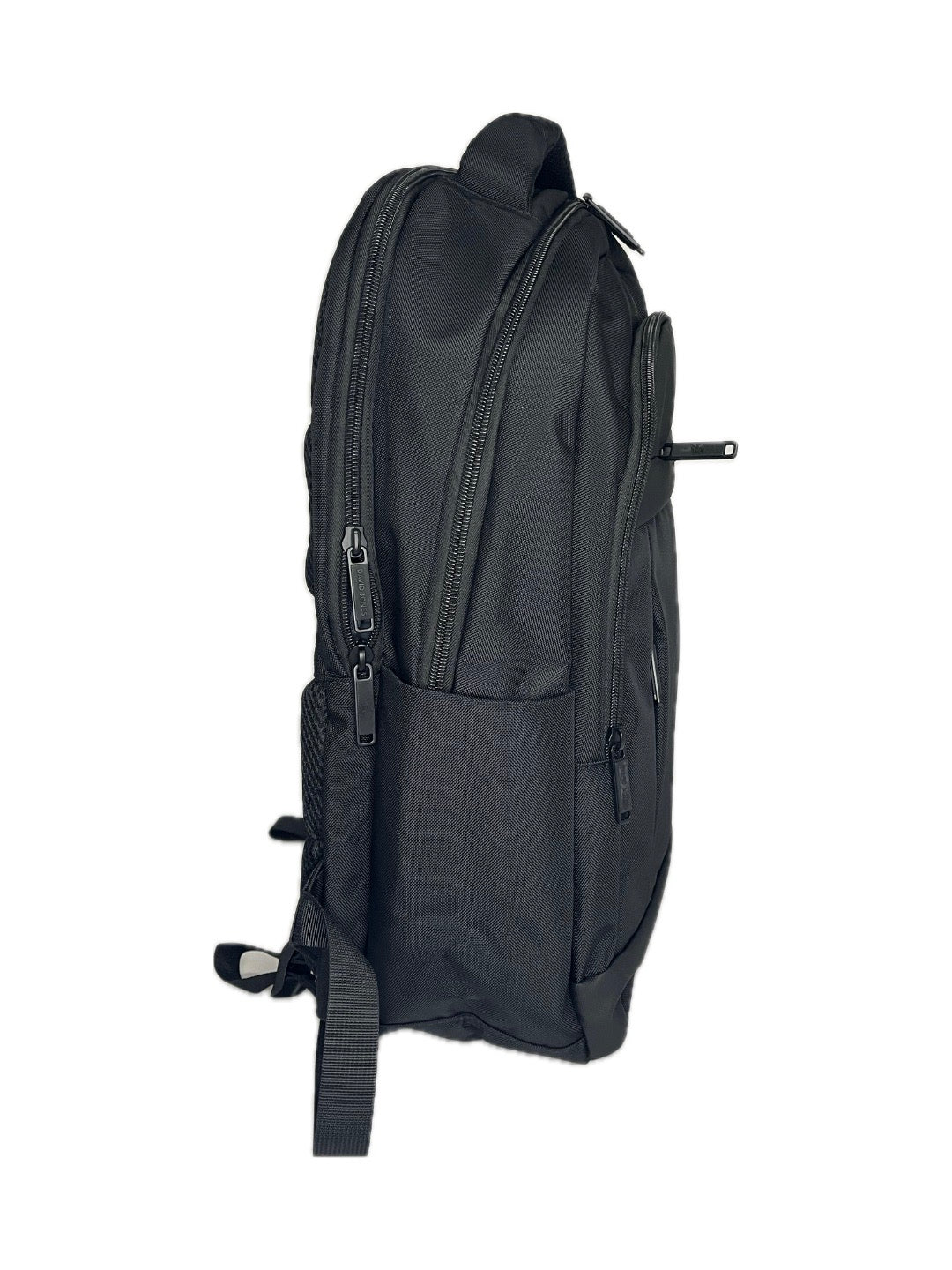 Dvě kapsy - jedna polstrovaná na notebook, druhá na osobní věci. Další dvě menší na přední straně, dvě kapsy po bocích batohu. Na zadním díle úchyt na kufr. Materiál z kvalitní impregnované textilie.