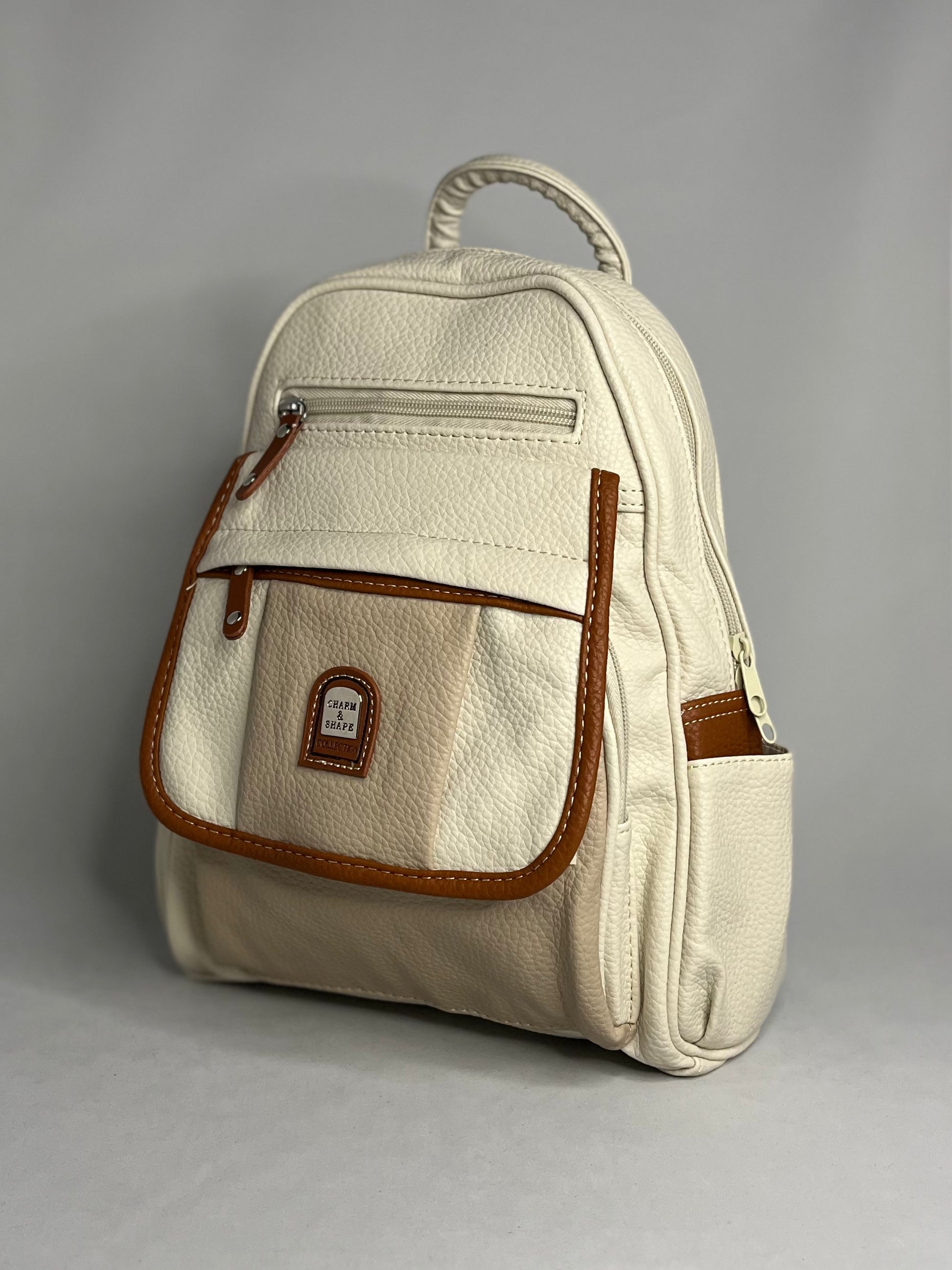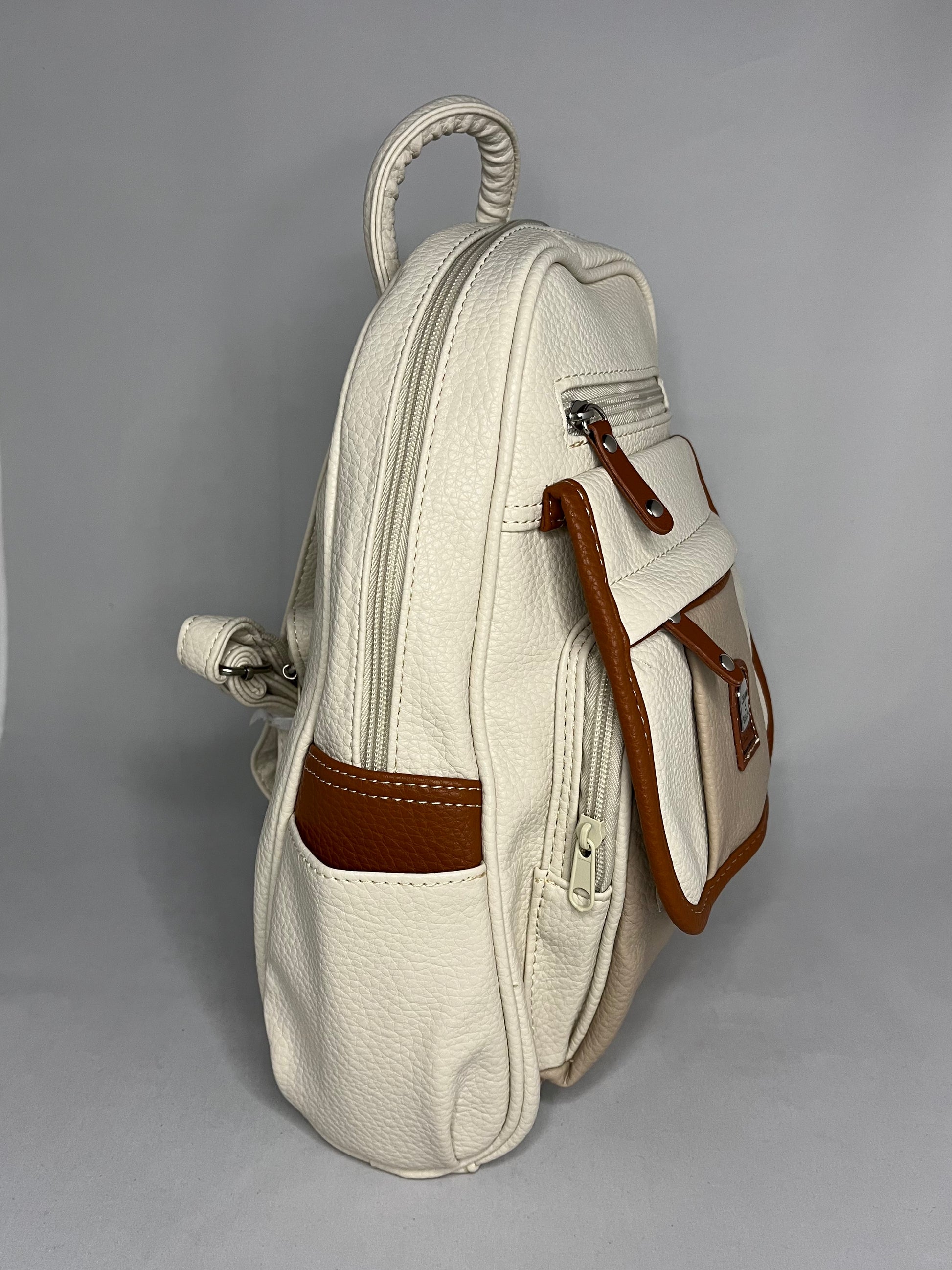 Elegantní baťůžek do města. Batoh má praktický design se spoustou kapsiček na zip, uvnitř je samozřejmostí malá kapsička se zipem a jedna "pohotovostní" na brýle, či klíče. Lze nosit nejen jako klasický baťůžek, ale i jako kabelku přes jedno rameno, popruhy lze díky zipu sepnout v jeden popruh.
