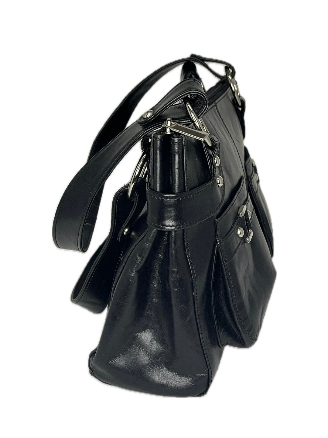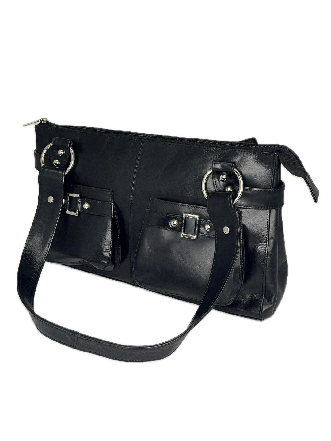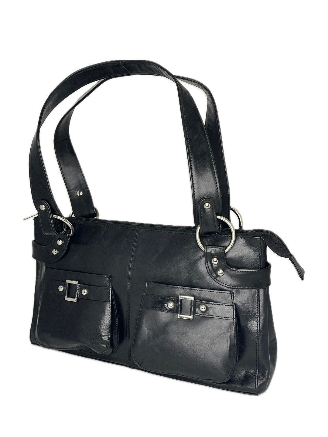 Elegantní a praktická kabelka z pravé kůže. Uvnitř tři oddíly vč. poutek na tužky a vizitky. Jedinečný design.