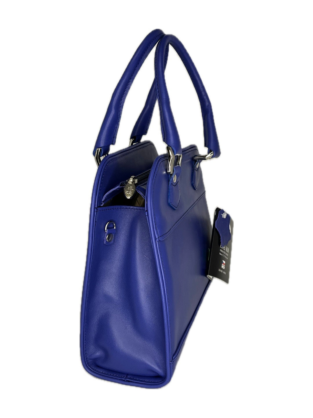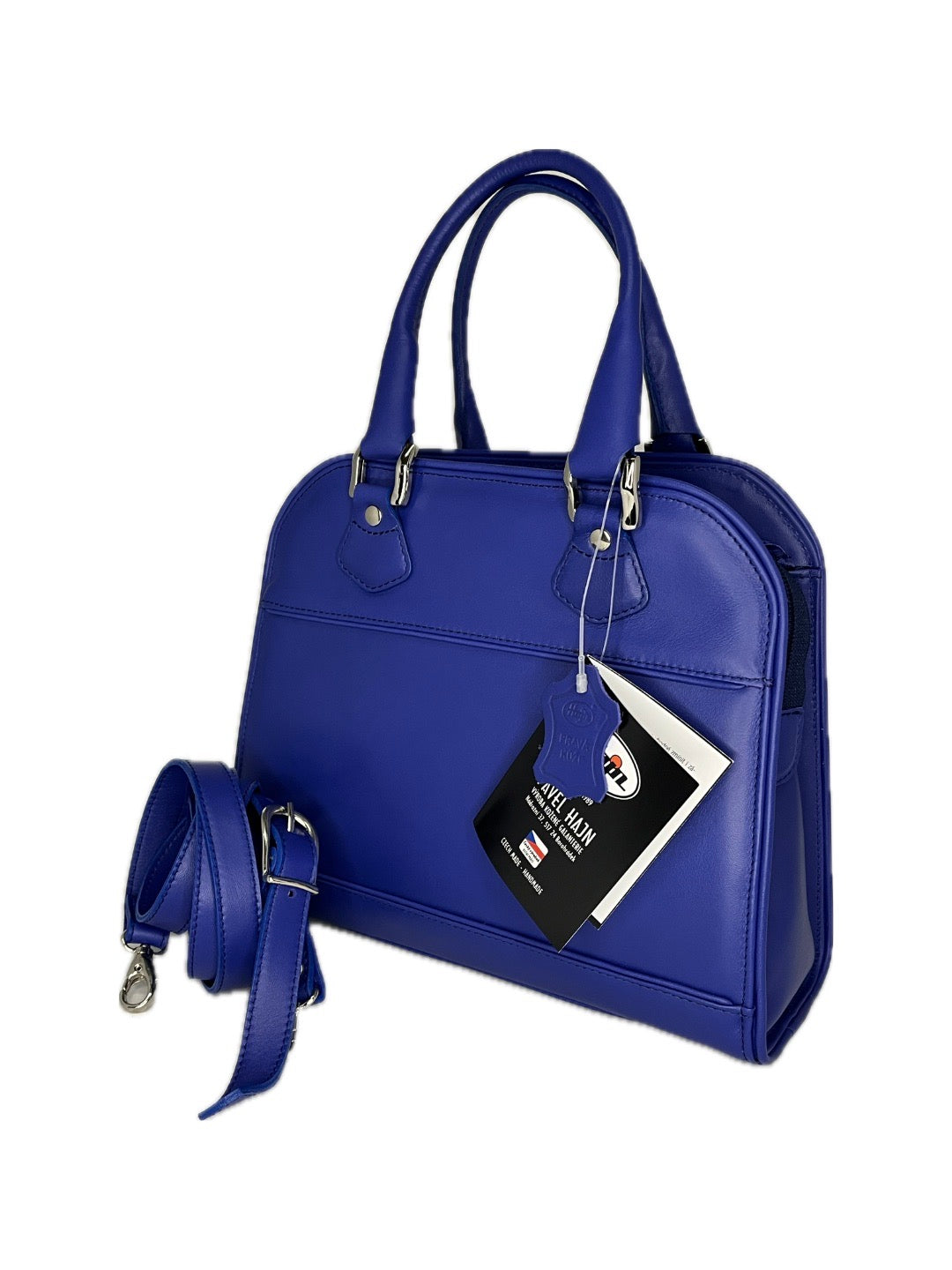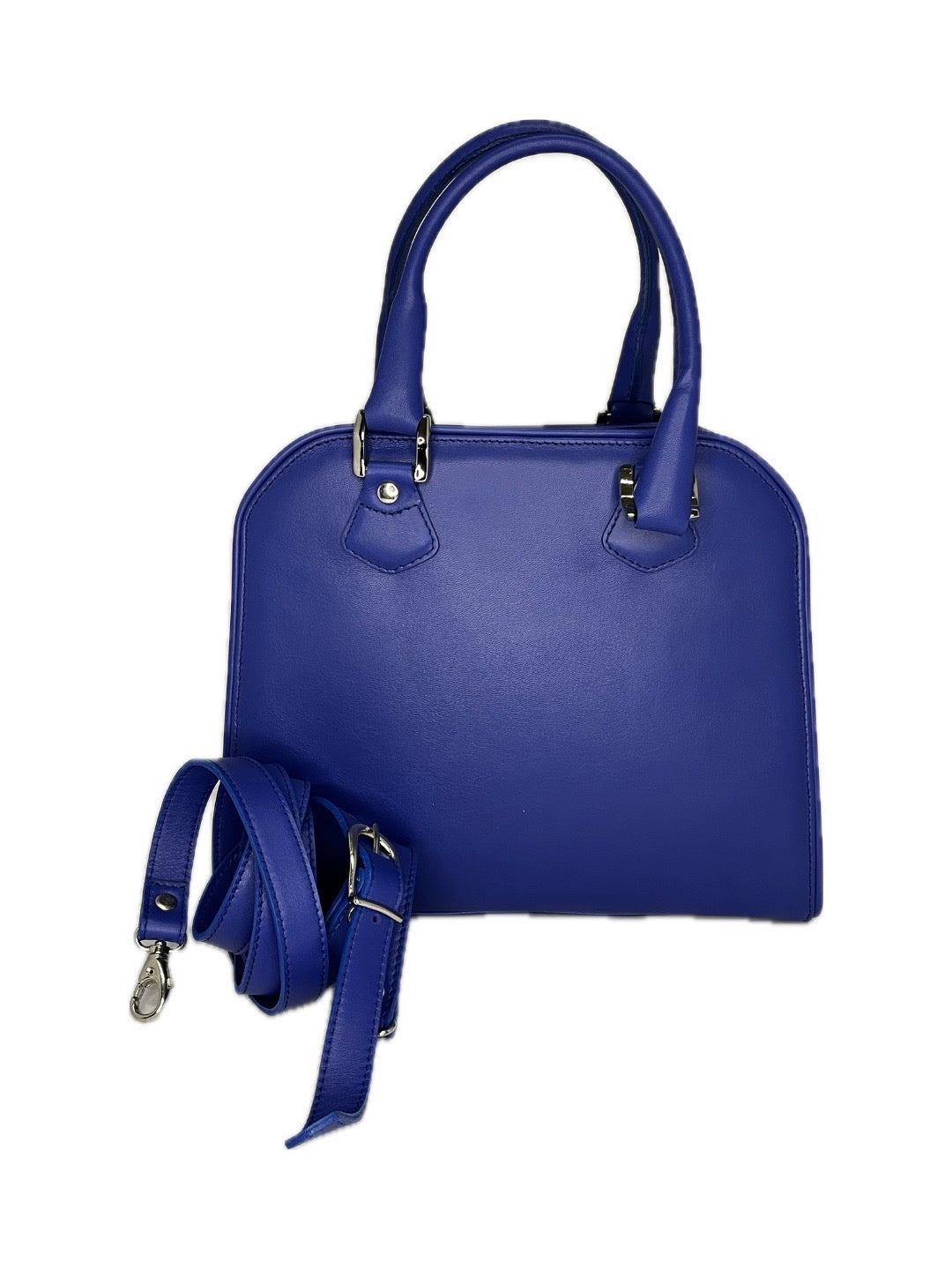 Dámská malá kabelka, zhotovená z hovězí usně (pravá kůže), uzavíratelná zipem. Kabelka je opatřena dvěma kulatými držadly do ruky a jedním plochým nastavitelným řemenem na rameno, který lze nosit i crossbody. Jedna hlavní kapsa, kapsička na mobilní telefon a malá dokladová kapsička na zip je součástí. Délka držadel 35 cm, popruh přes rameno lze prodloužit až do 115 cm.