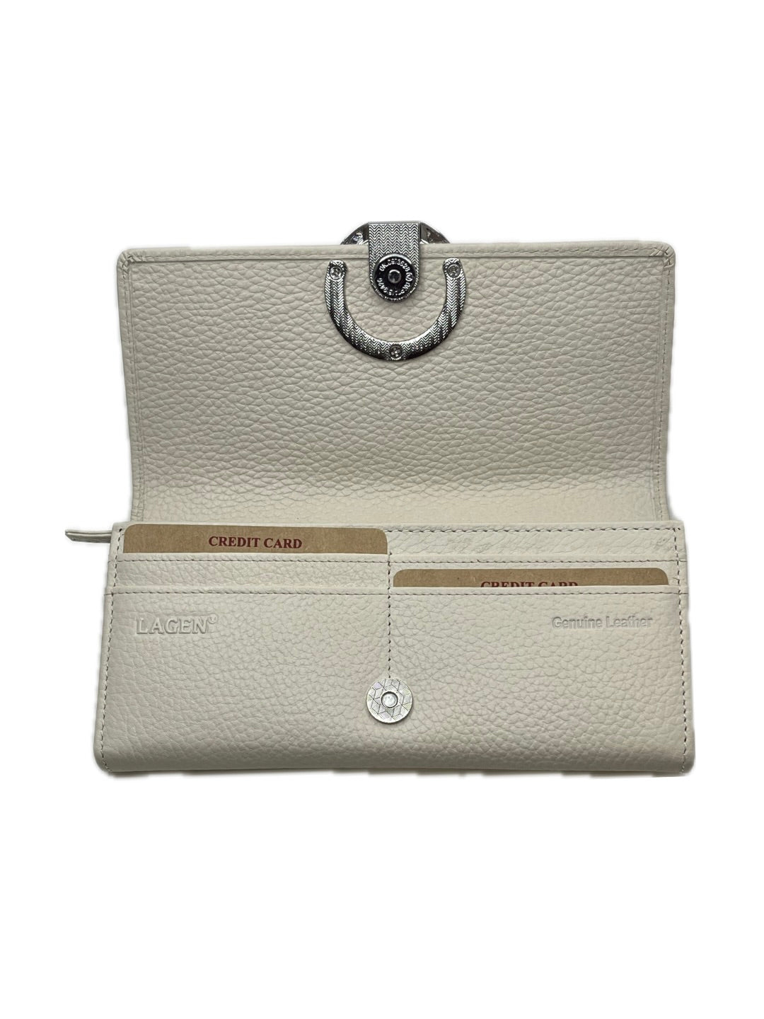 Dámská kožená peněženka typu penál se stříbrnou sponou