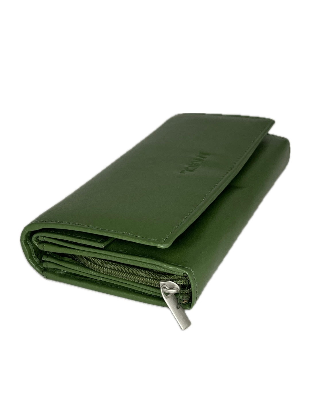 Elegantní dlouhá peněženka má dostatek místa na bankovky, karty a mince. Zpracování z pravé kůže v netradiční zelené barvě. Funkce RFID brání zneužití vašich platebních karet.