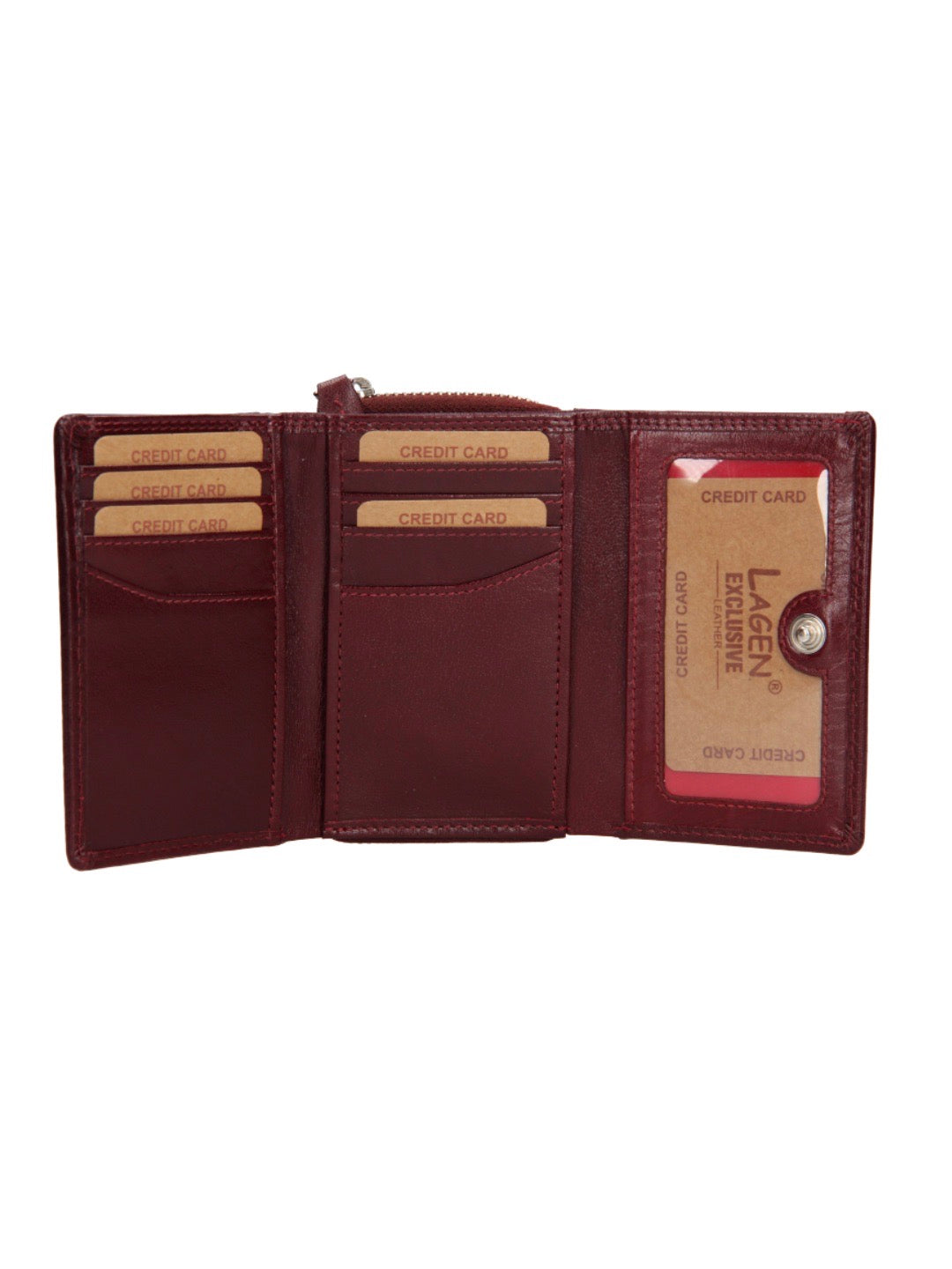 Kožená peněženka značky Lagen je vyrobena z kvalitní kůže. Peněženka nabízí dostatek místa pro karty i bankovky a pohodlně se vejde i do malé kabelky. Osm přihrádek na karty, jedna průhledná, dvě na bankovky. Přihrádka na mince uzavíratelná zipem.