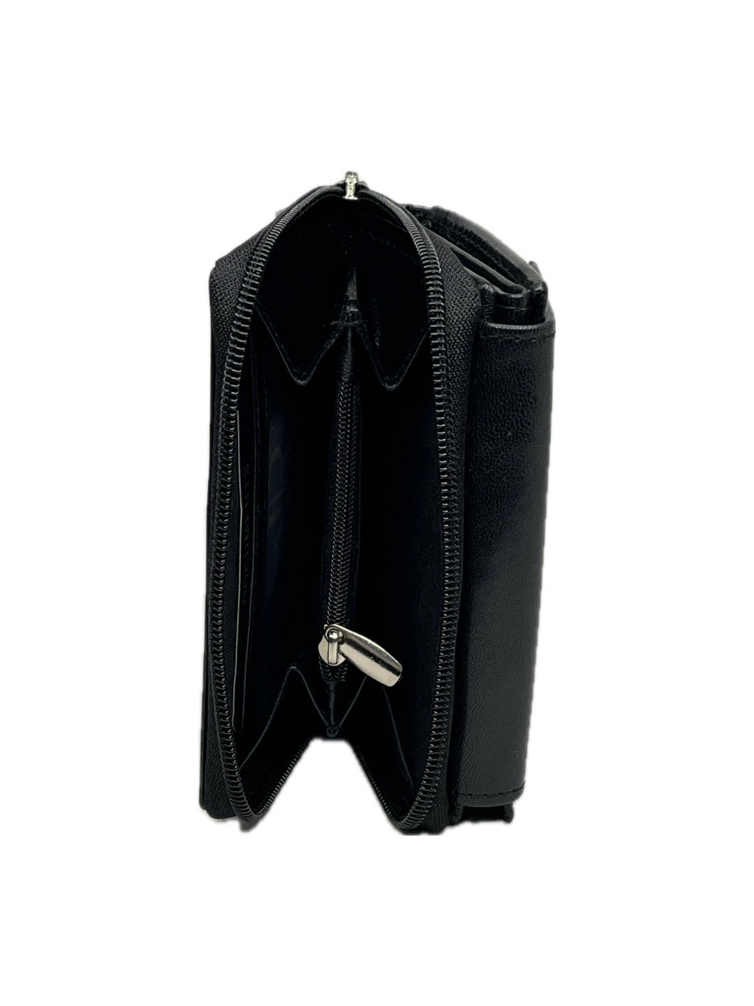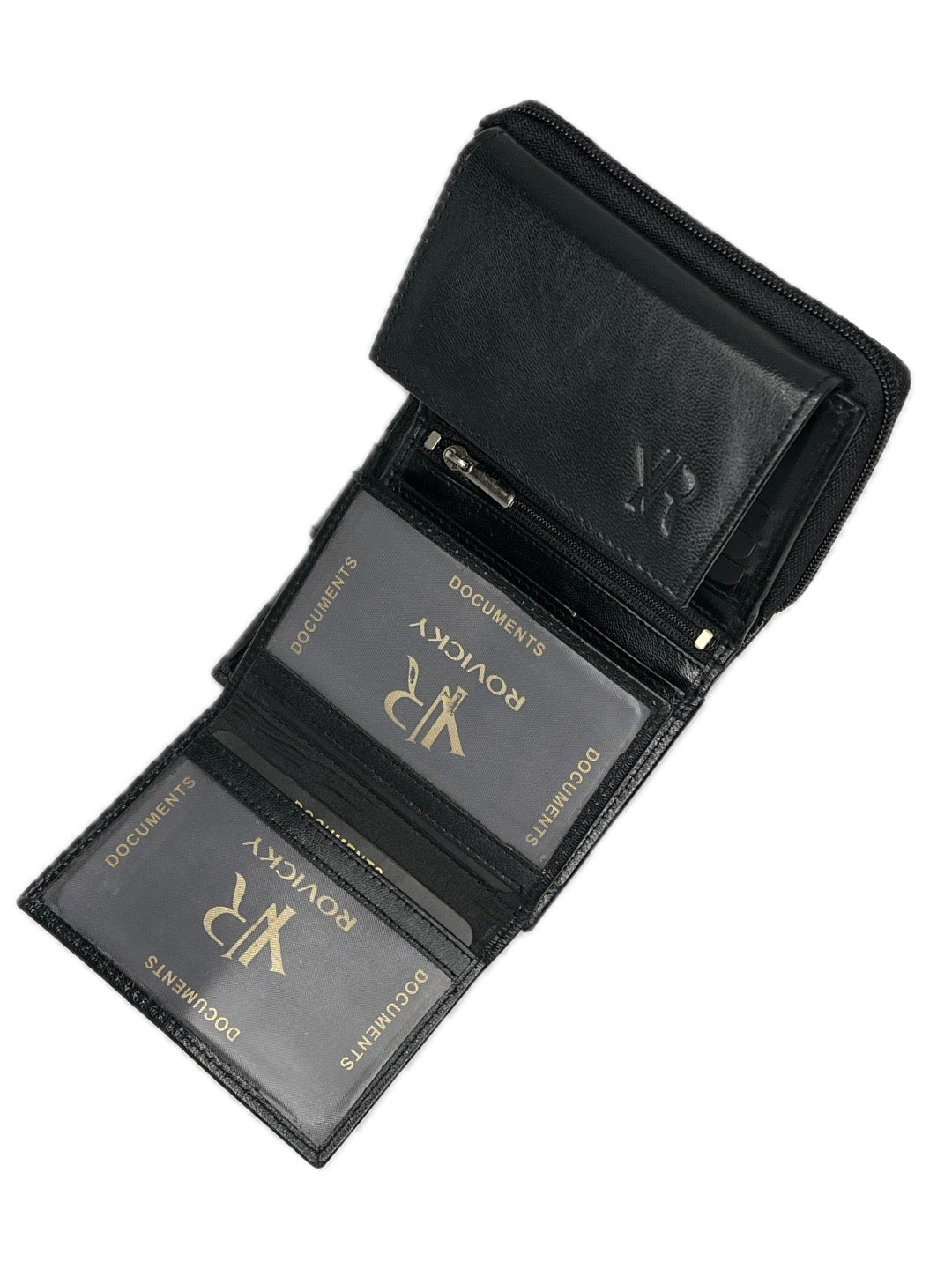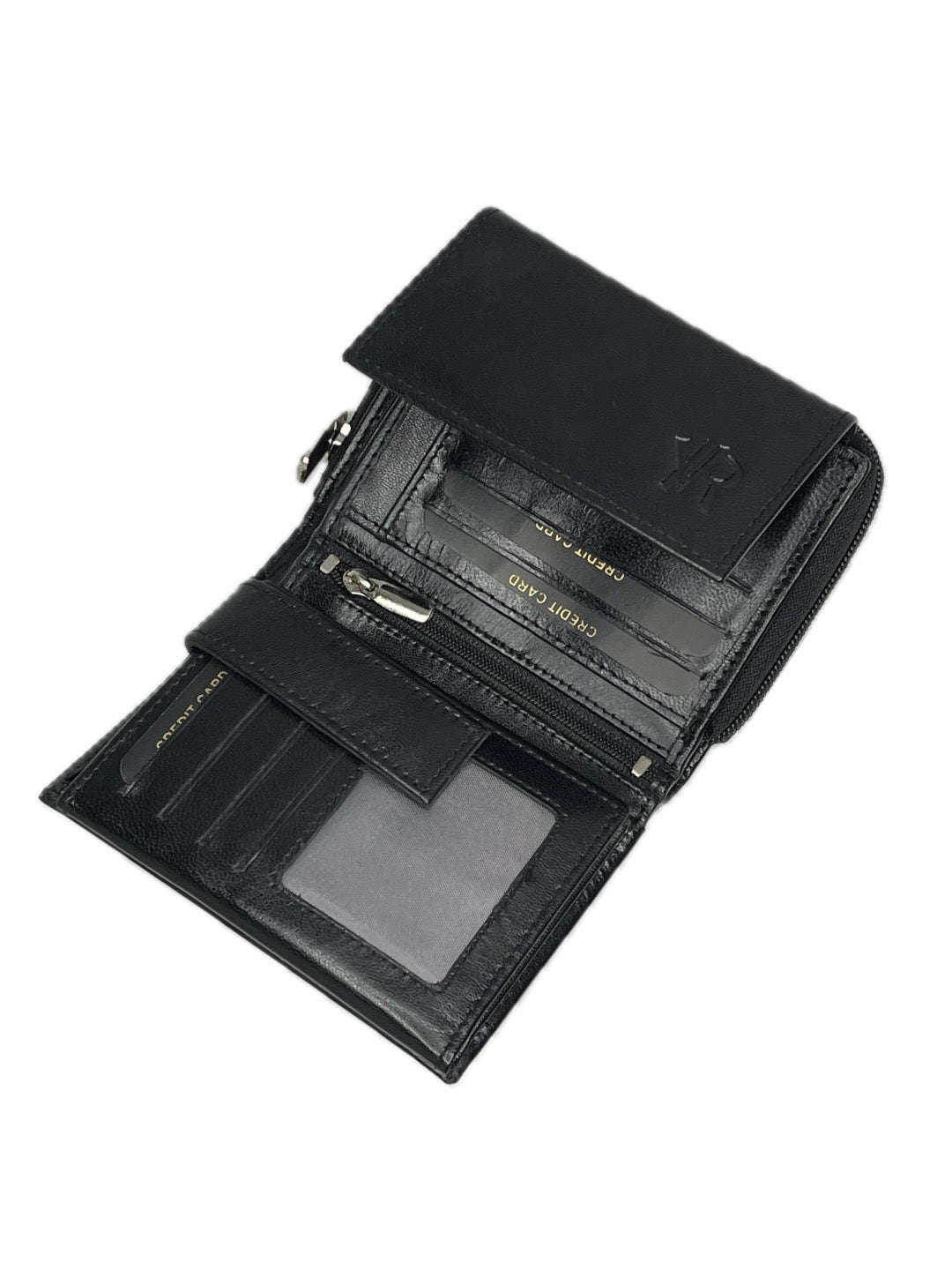 Menší dámská peněženka z pravé kůže, funkce RFID pro ochranu karet je samozřejmostí. Přihrádka na mince má dva oddíly na drobné, jeden na zip a další oddíl na kartu. Dva oddíly na bankovky a 17 na karty. Zapínání na dva druky, můžete podle obsahu peněženky zvolit variantu.