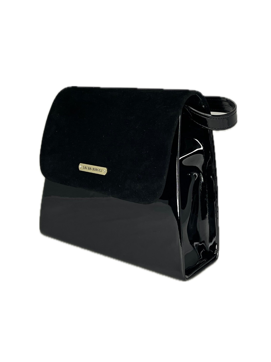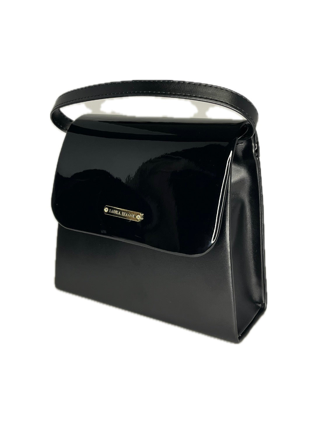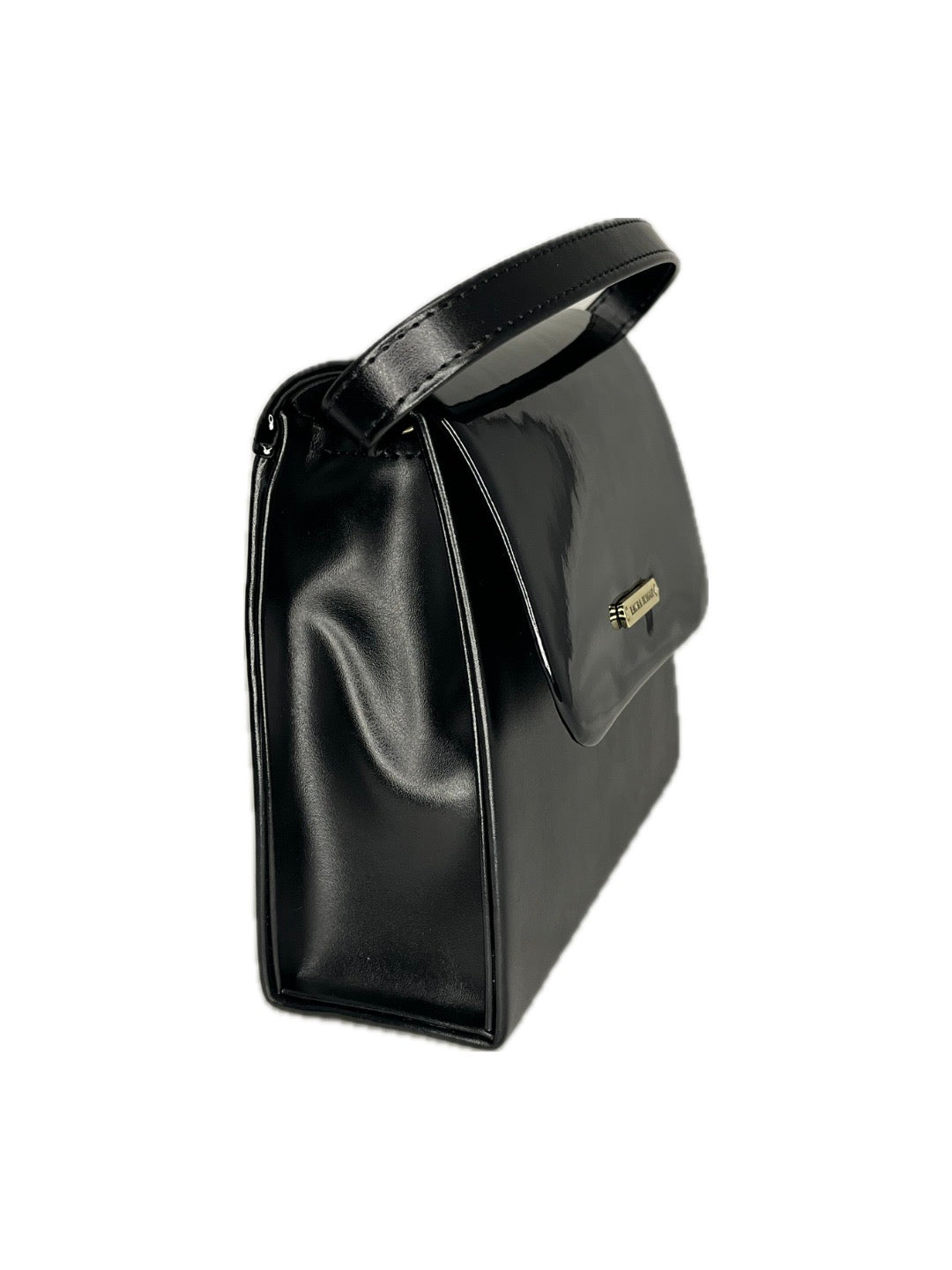 Dámská společenská kabelka v kombinaci s lakovanou kůží - černá