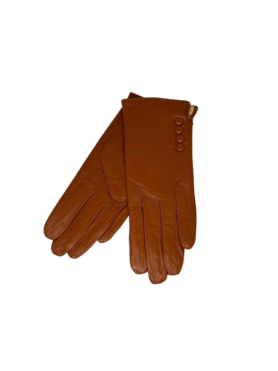 Dámské kožené rukavice zateplené mikroplyšem v barvě koňak