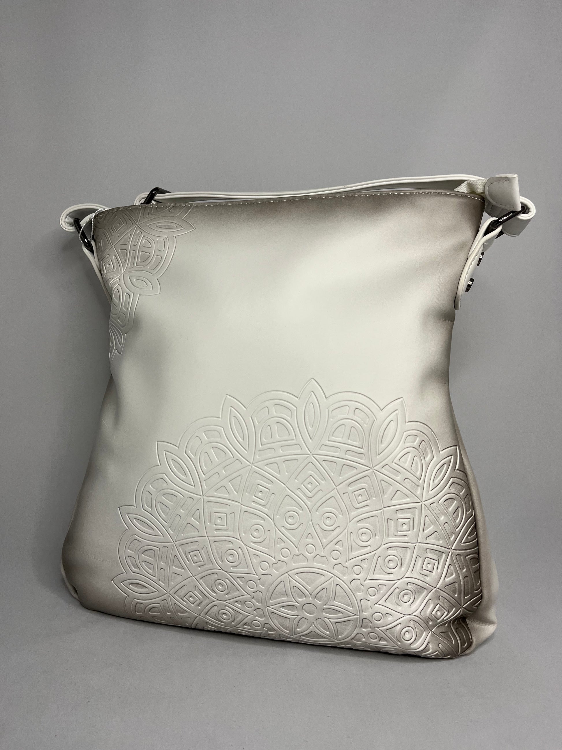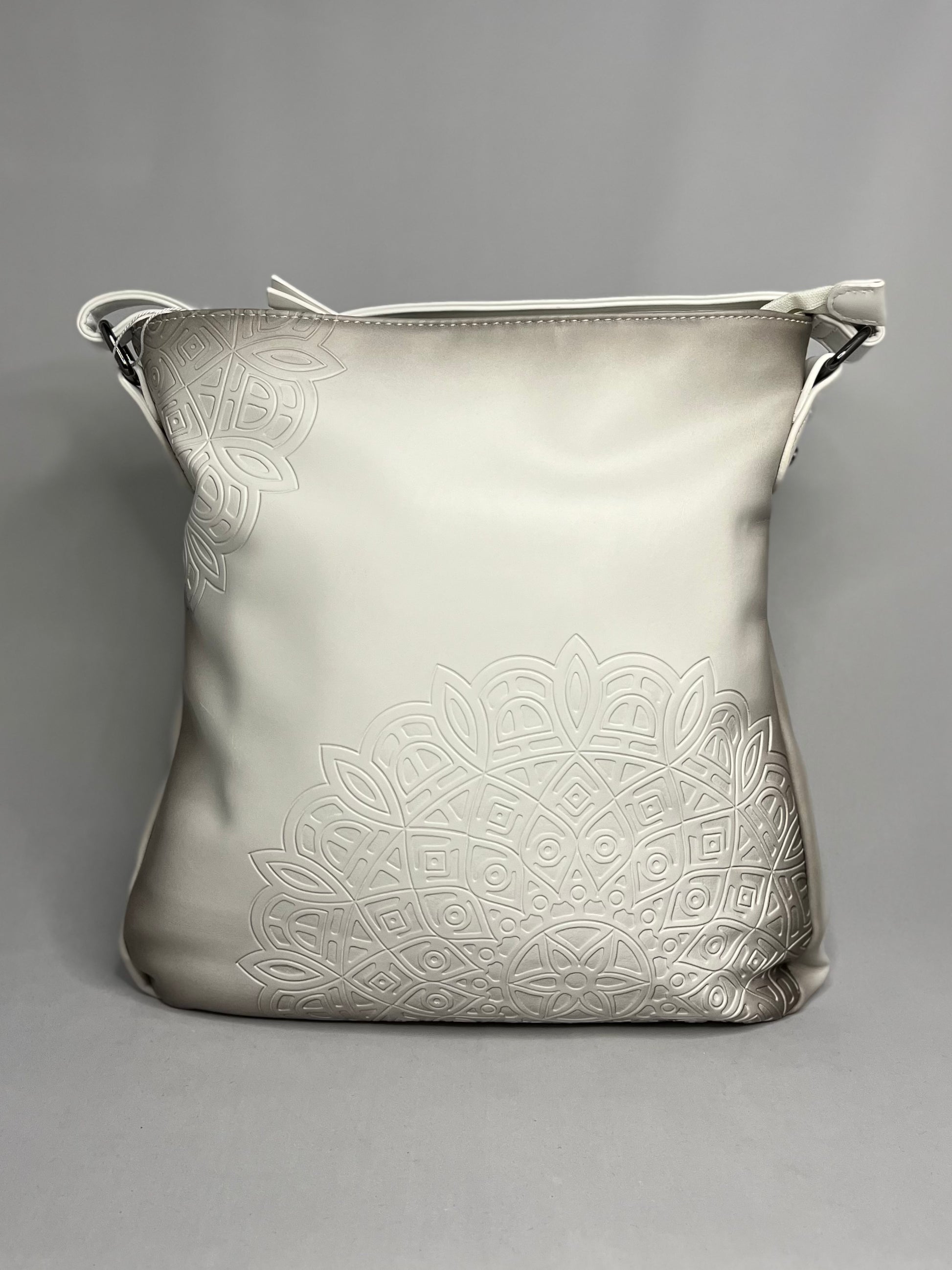 Kabelka crossbody s motivem mandaly, barevná podšívka. Nastavitelný popruh až do 115 cm. Vnější kapsu na zip doplňuje vnitřní kapsička se zipem a dvě malé "pohotovostní", které využijete na mobil, nebo brýle.