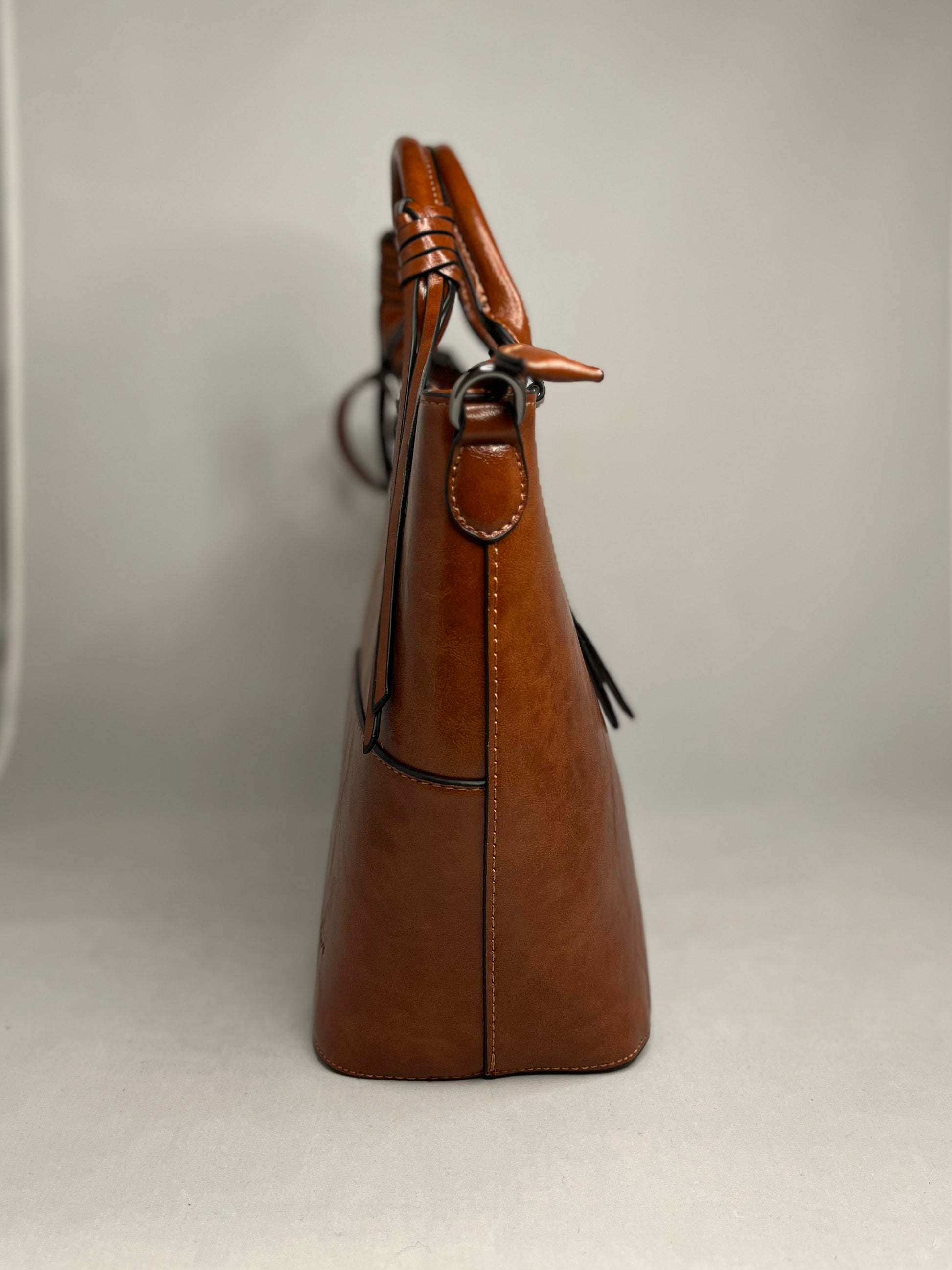 Perfektní doplněk, který oživí formální outfit. Kvalitní materiál a precizní zpracování. Kabelka do ruky i přes rameno, popruh prodloužíte až na 120 cm. Nádherná podšívka. Dvě velké kapsy oddělené plochou kapsou na zip, hlavní kapsa je doplněna kapsičkou na zip a dvěma malými "pohotovostními", které využijete na mobil, nebo brýle. Vnější kapsa na zip je samozřejmostí.