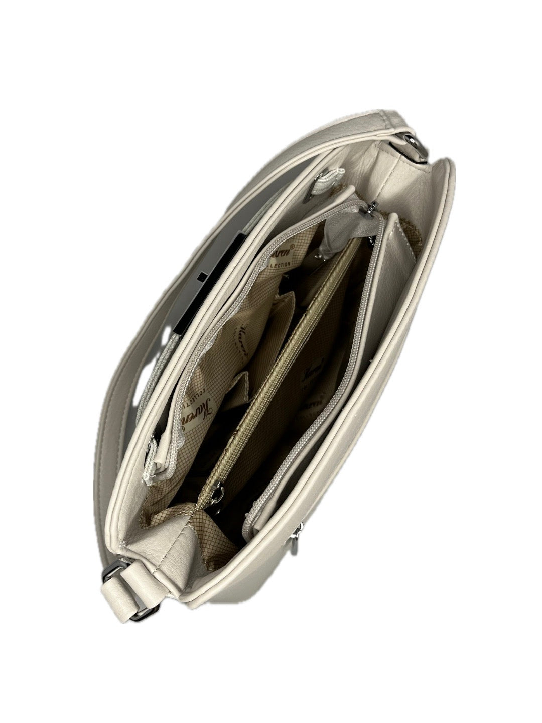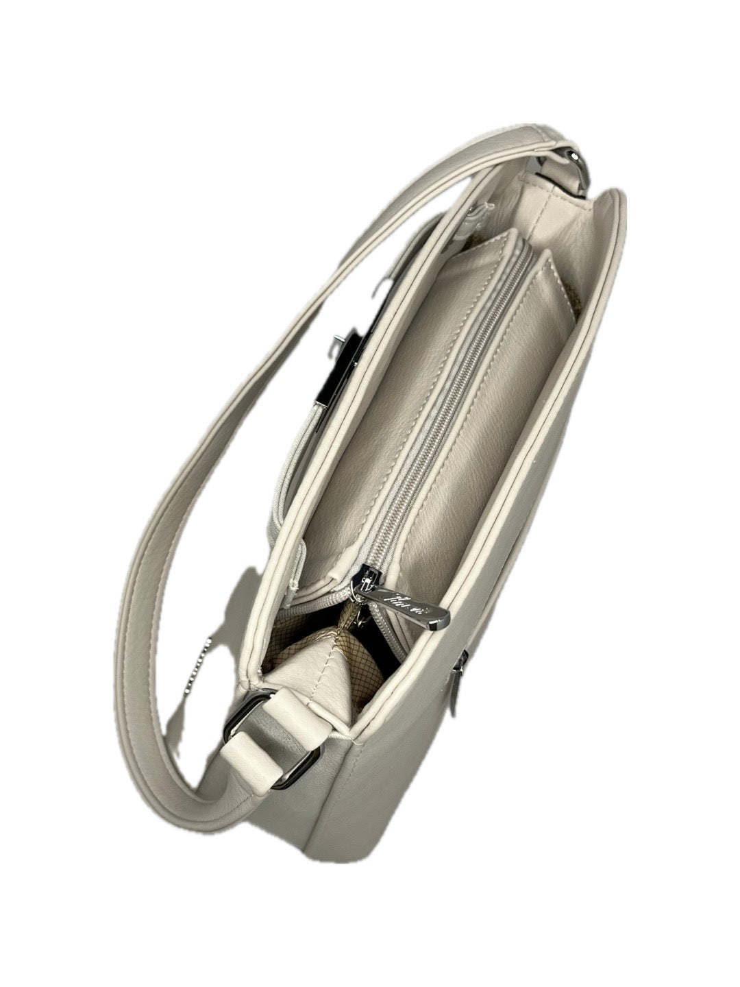 Malá kabelka do ruky, i s popruhem přes rameno. Hlavní prostor kabelky se uzavírá na zip, uvnitř dvě prostorné přihrádky a jedna velká kapsa na zip. Nechybí ani bezpečnostní kapsička na zip a dvě "pohotovostní" na telefon, či brýle. Kabelka má pevné dno, které disponuje kovovými cvočky.