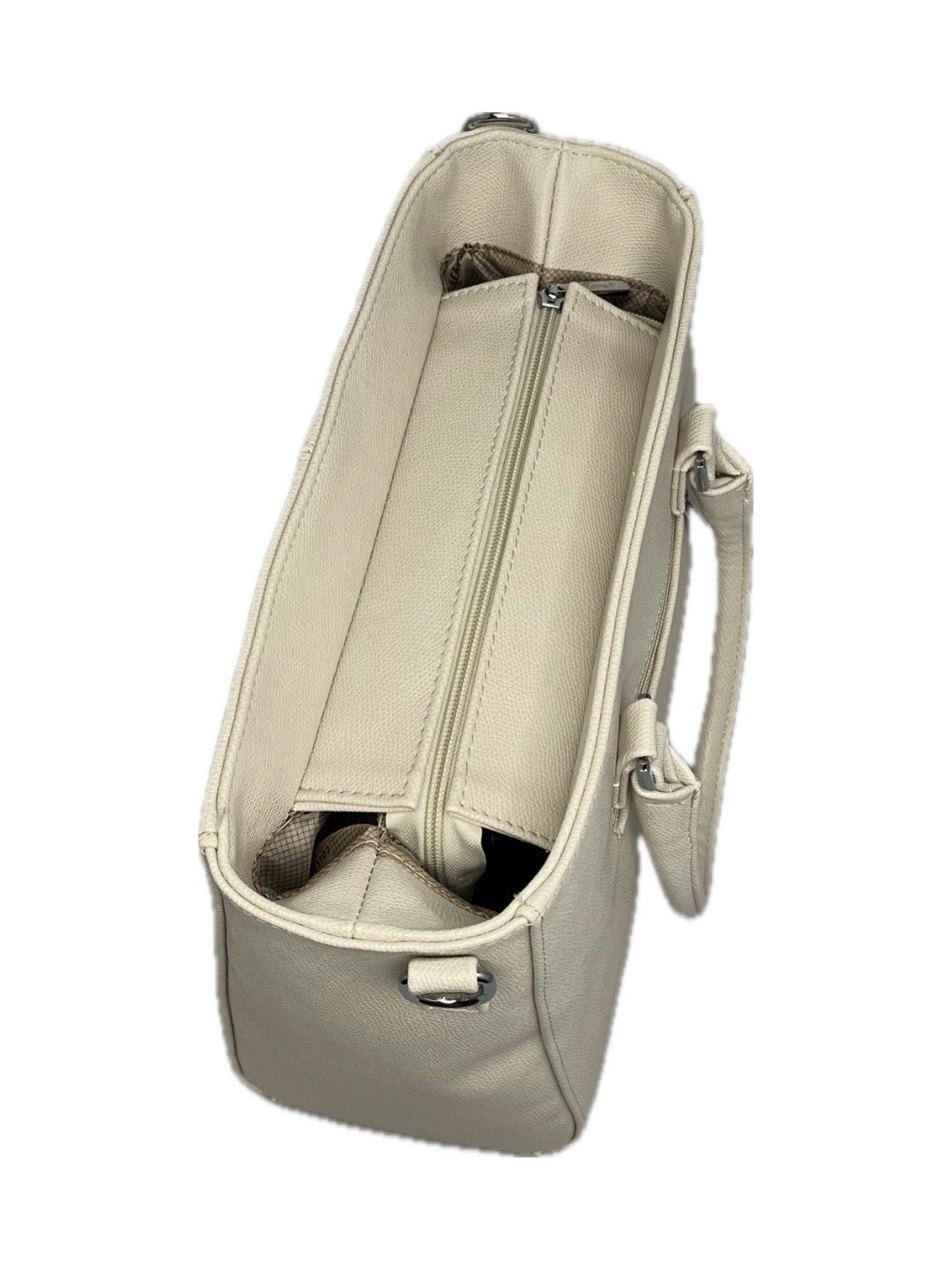 Ikona moderních kabelek. Specifický design, pevné dno, drží tvar, dvě ucha o délce 40 cm, další lze prodloužit až do 120 cm, lze tedy nosit v ruce i na rameni. Velkou předností je její prostor, vnitřek členěný na tři oddíly, které zajistí přehled a pořádek. Nádherná karmínová podšívka. Uvnitř je další kapsička na zip a dvě drobnosti. Vnější kapsa na zip je samozřejmostí