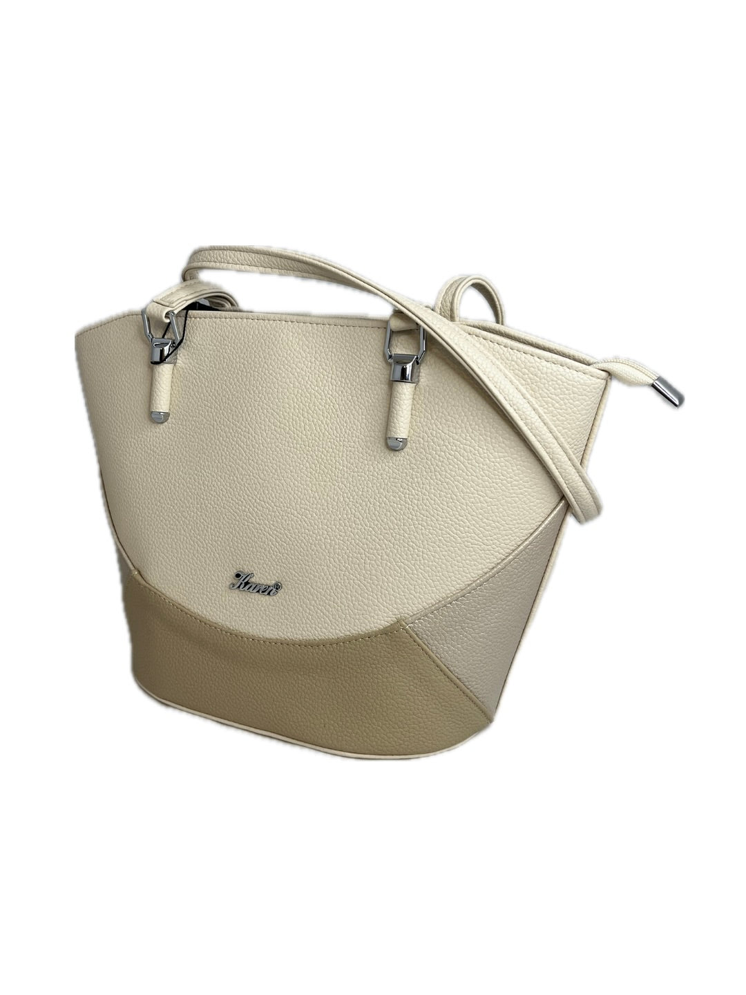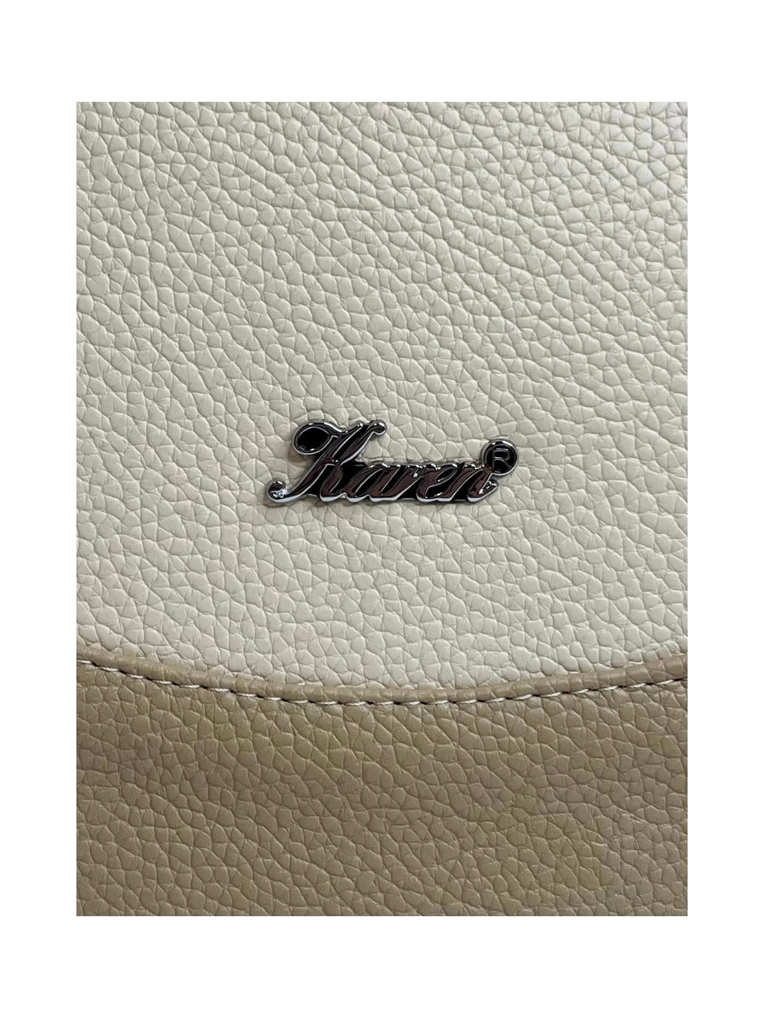Elegantní koženková kabelka značky Karen, která je typická extrémní lehkostí. Kombinace tří barev v jemných béžových odstínech je nevšední a působivá.