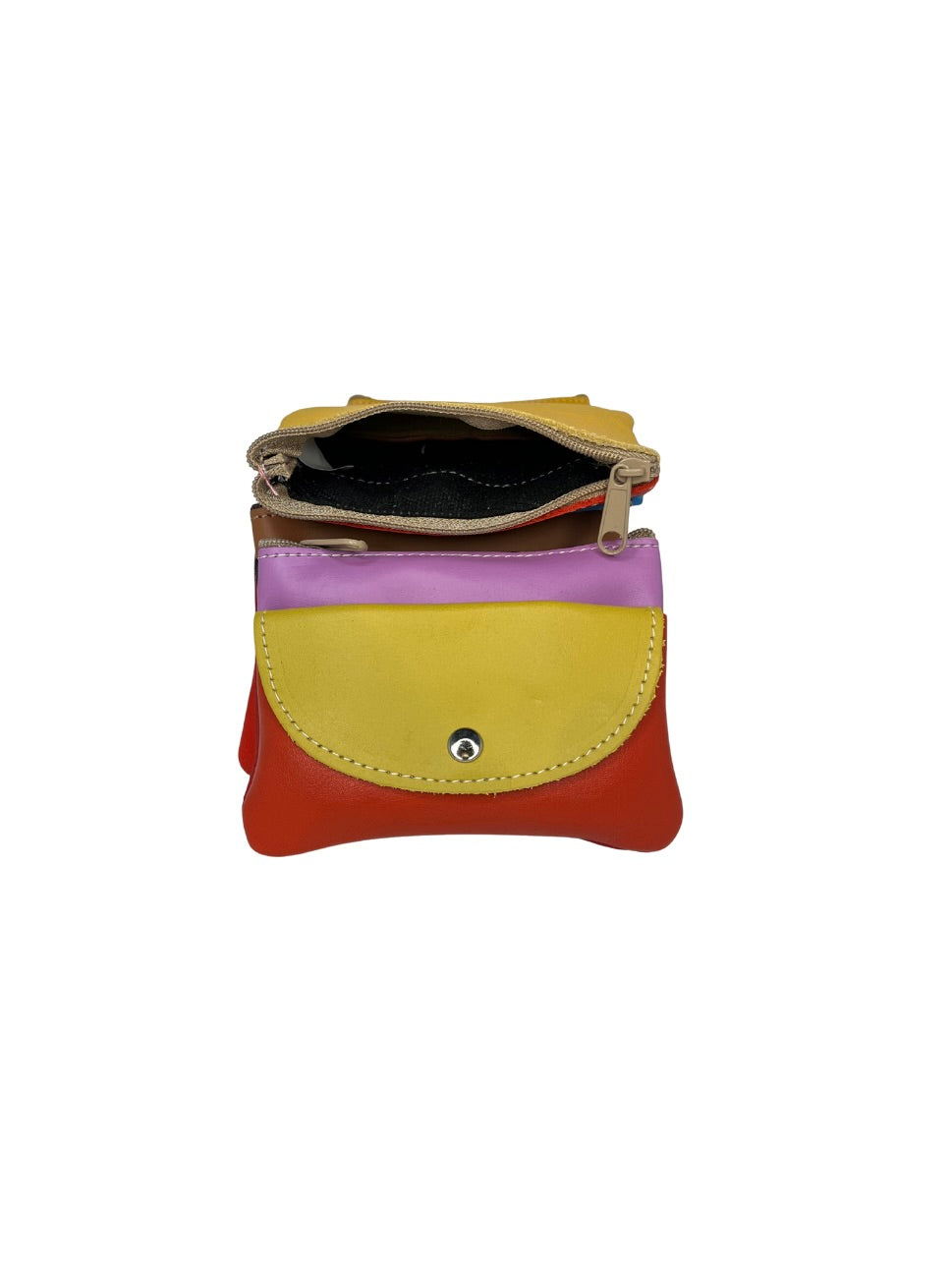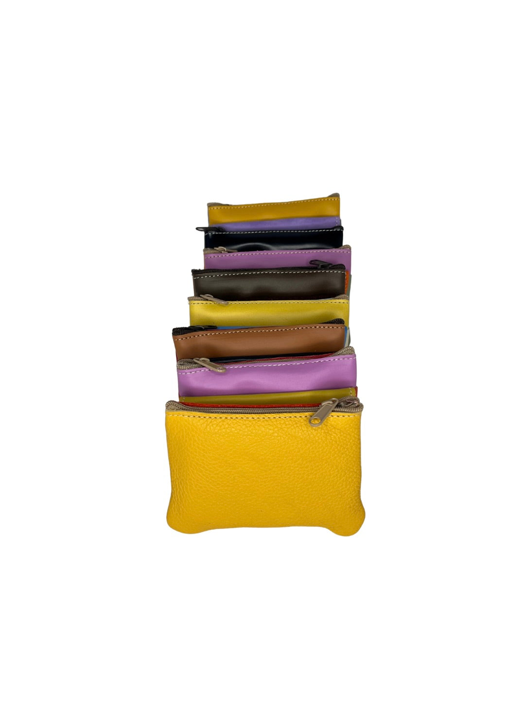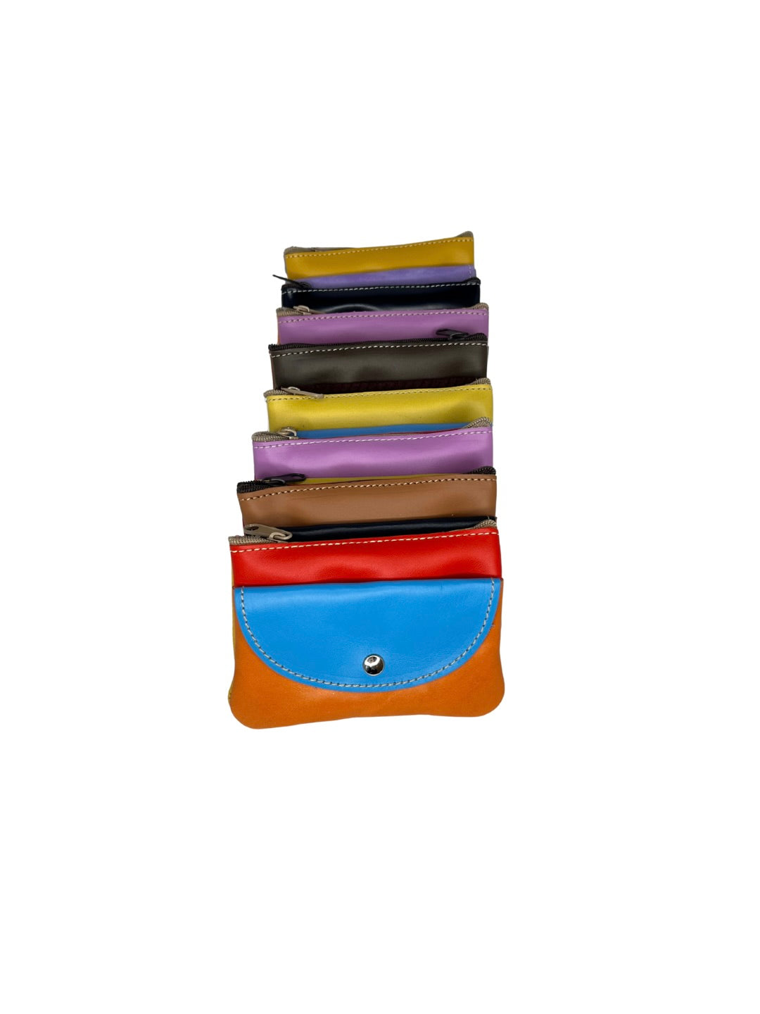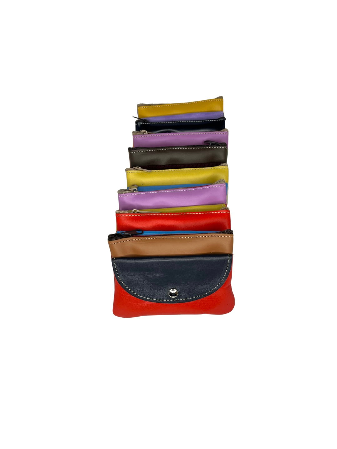 Maličká kapsička na zip, kombinovaná z barevné kůže. Kombinace jsou různé, nelze vybrat konkrétní vzor.
