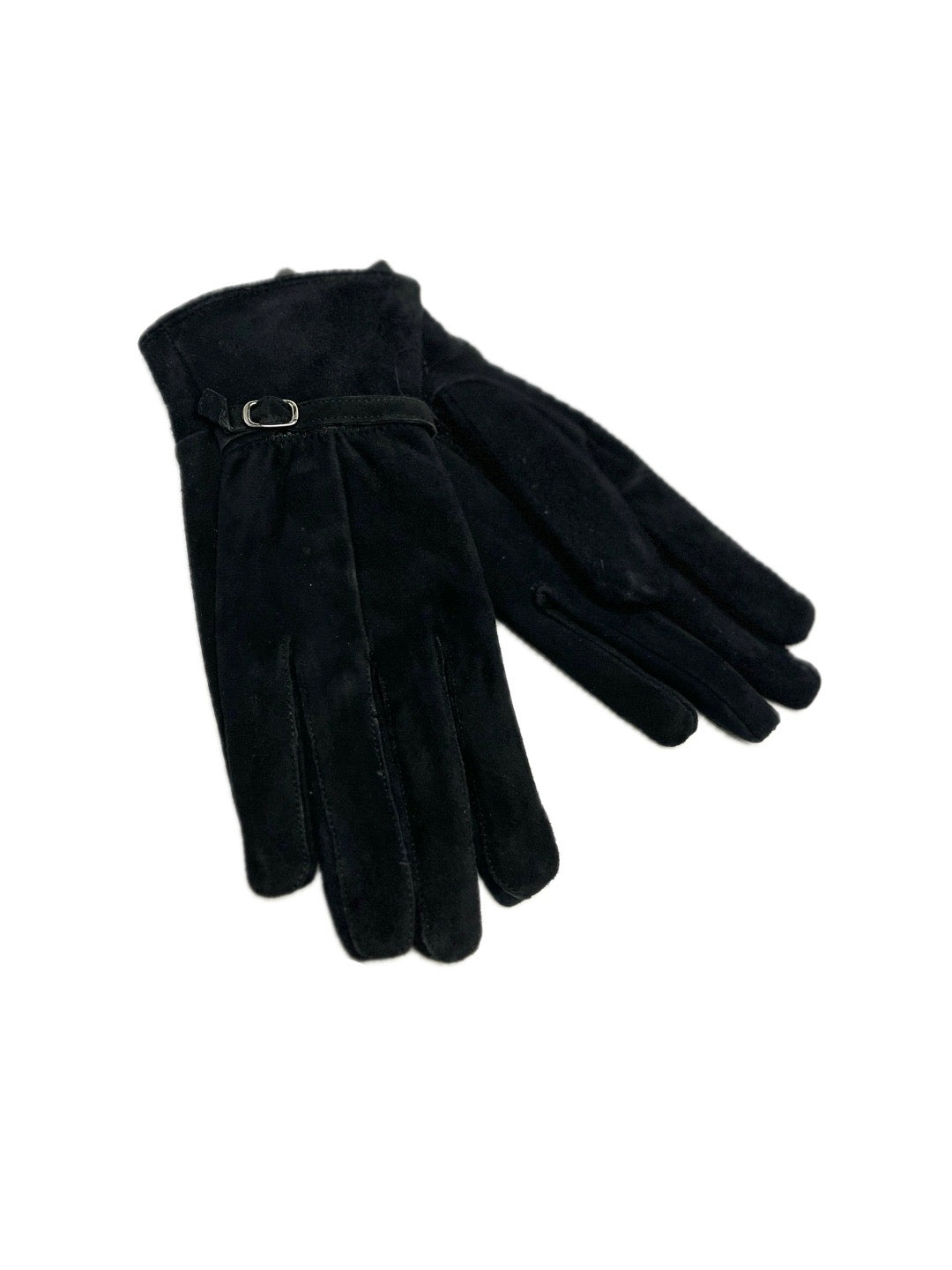 Dámské elegantní rukavice se stříbrnou sponou. Rukavice je vevnitř zateplená hnědým jemným umělým kožíškem.
