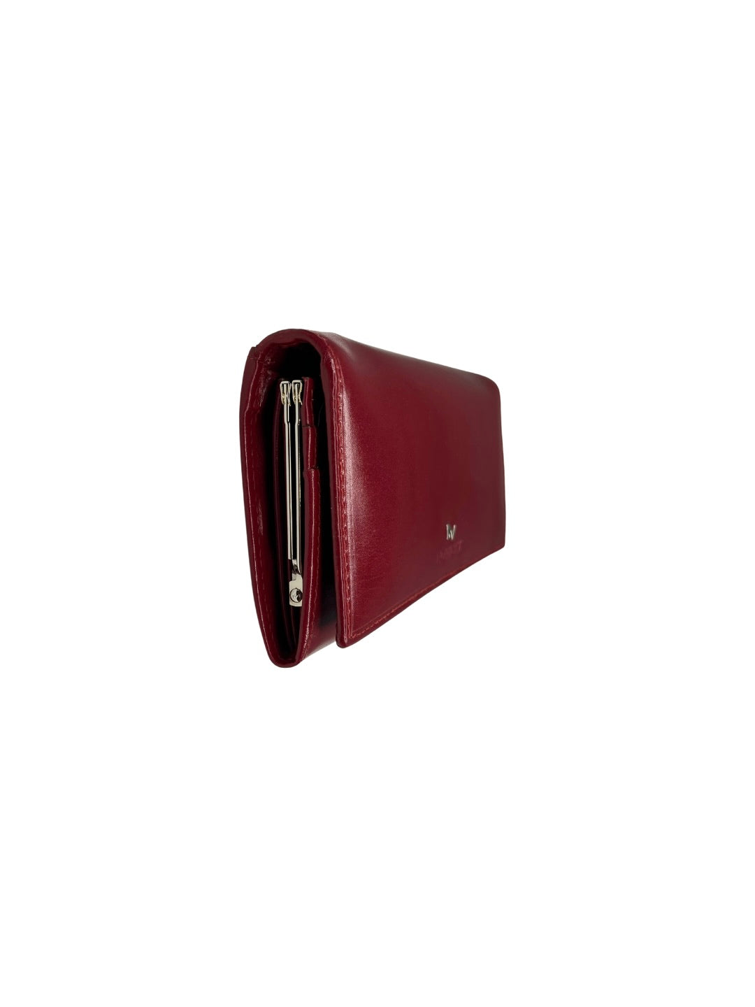 Tato luxusní peněženka v nádherné červené barvě. Stříbrný rámeček uzavírá prostor na mince. Kůže je zpracována v té nejvyšší kvalitě.