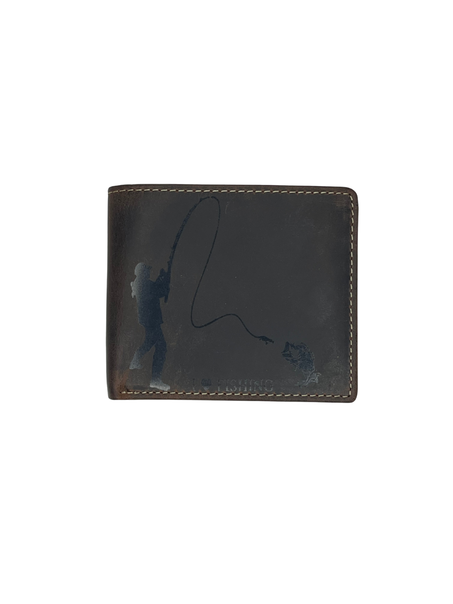 Menší pánská / chlapecká kožená peněženka s motivem rybáře