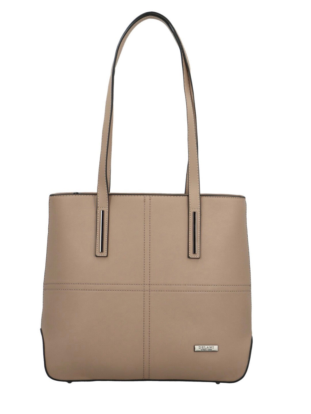 Její pevné a dostatečně dlouhé uši, poslouží k pohodlnému nošení na rameni po celý den. Vkusné prošití na přední straně a tmavě stříbrné kování a logo značky doplní jemný, ale moderní design. Pro vaše věci poslouží dostatečně velký hlavní prostor, který je dělený středovou zipovou kapsou a pro drobnosti jako, klíče, kapesníky, či make-up, poslouží vnitřní boční kapsičky. To vše pak zajistíte hlavním zipem. V zadní části malá zipová kapsička, pro rychlý přístup k vašim věcem. Kabelka je vyrobená s láskou, má velmi pěkný tvar, její spodní boční strany jsou zaoblené a kabelce to velmi sluší. Spodní díl je opatřen kovovými nožkami, proti poškrábání či zašpinění.