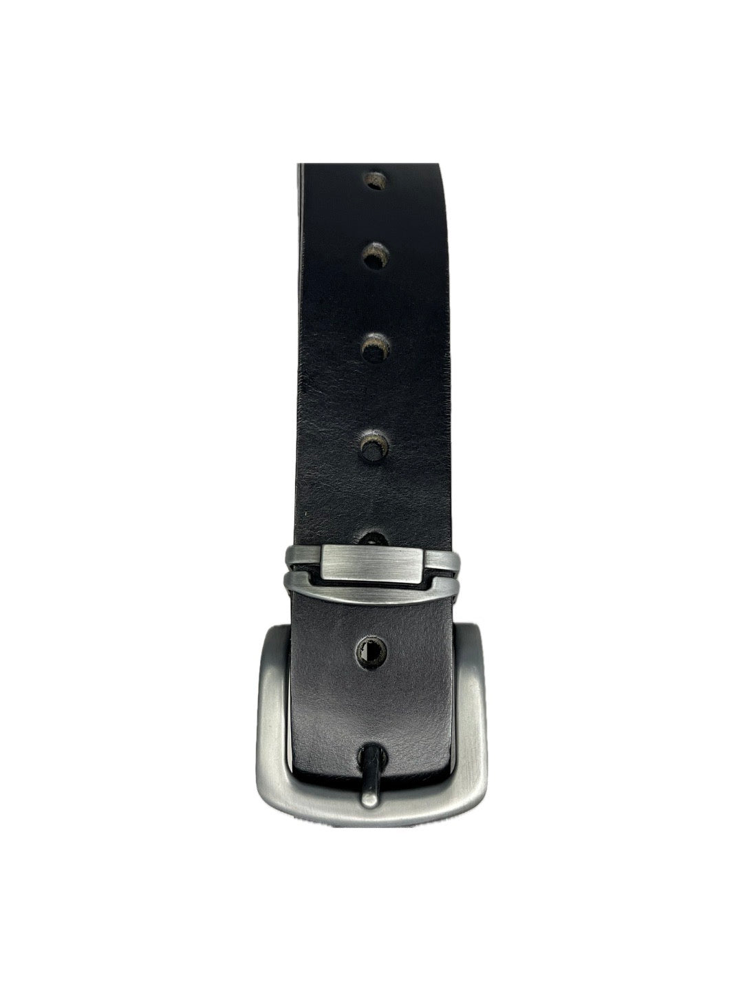 Pánský kožený opasek o šířce 40 mm má zajímavou sponu s povrchovou úpravou stíraný zinek. Tato spona neobsahuje nikl. Na výběr máte z několika různých délek opasků.