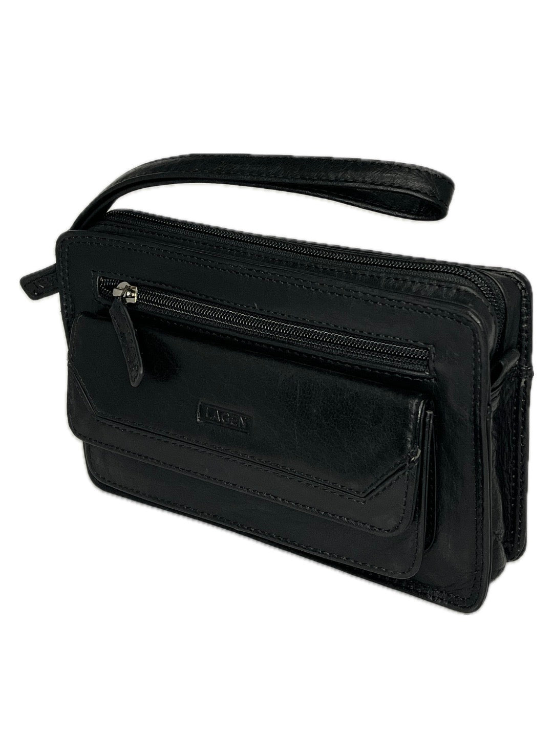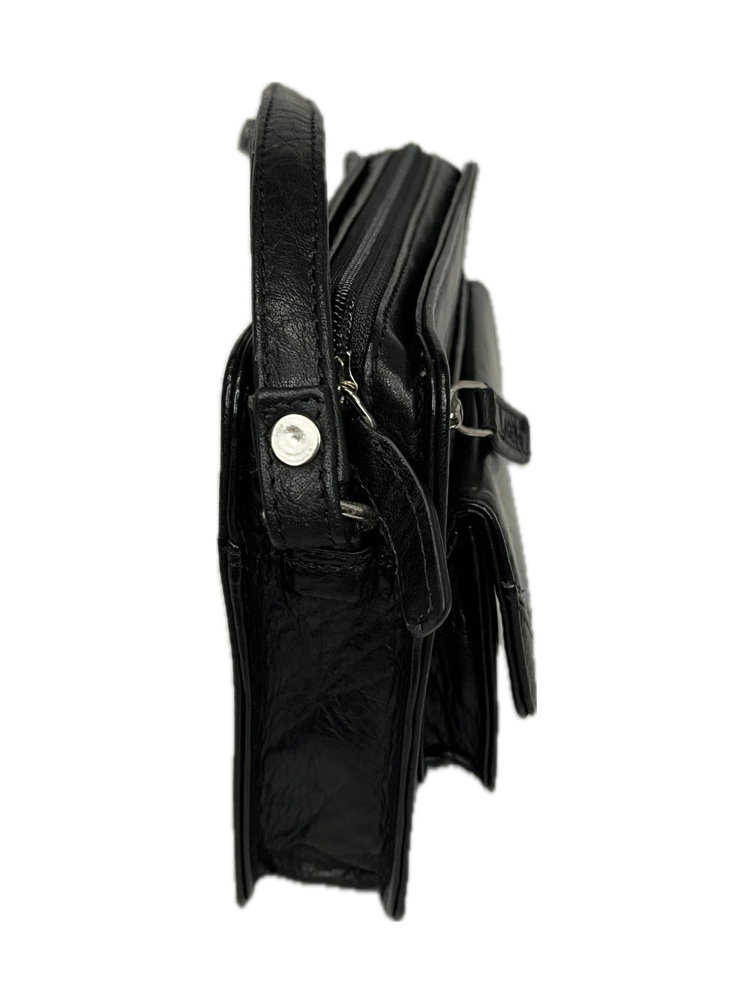 Pánská luxusní černá kožené etue na zip. Uvnitř – místo na doklady, telefon, karty a drobnosti. Materiál - pravá kůže.