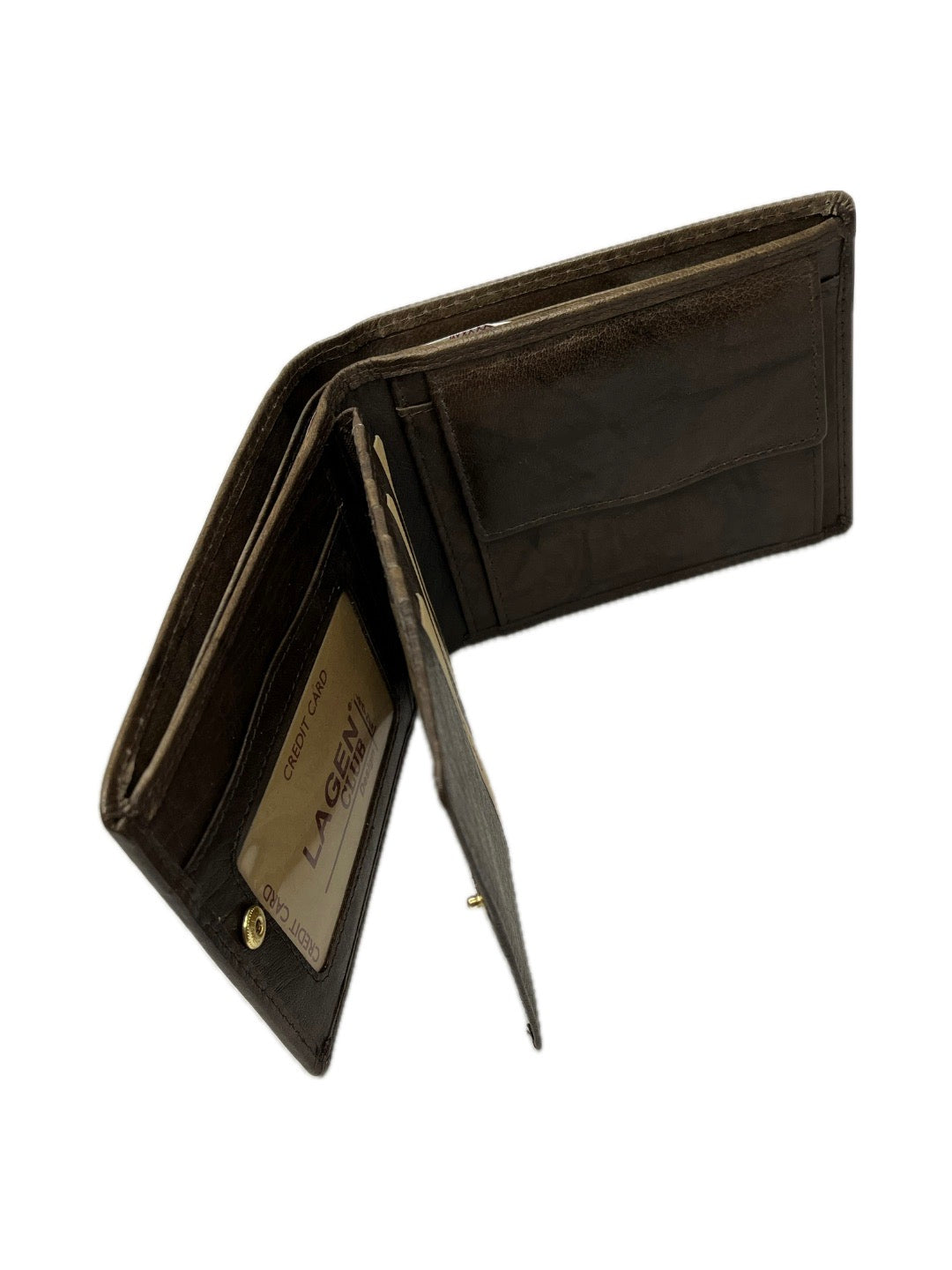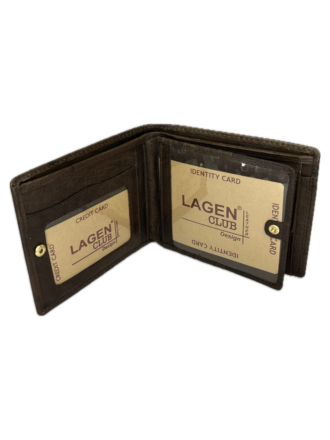 Pánské peněženky Lagen nabízí kromě elegance, ruční výrobu a nekompromisní kvalitu. Uvnitř najdete prostor pro uložení bankovek, dokladů, kreditních karet a mincí. Tato peněženka je situovaná na šírku. Přihrádka na bankovky uzavíratelná klopnou