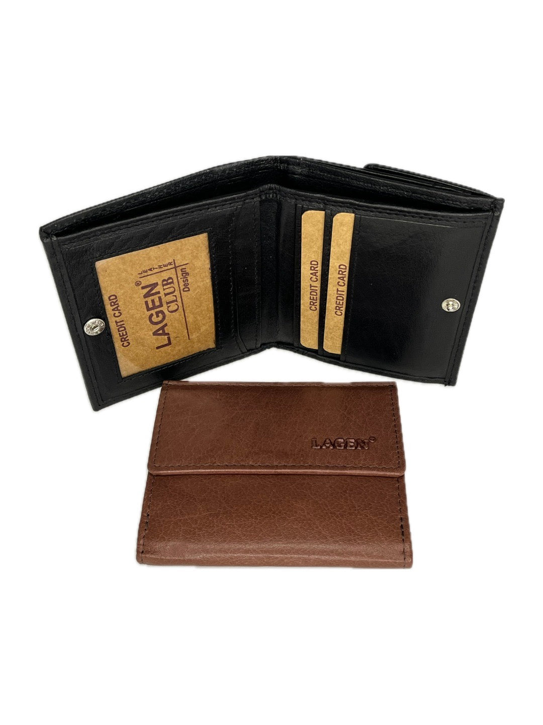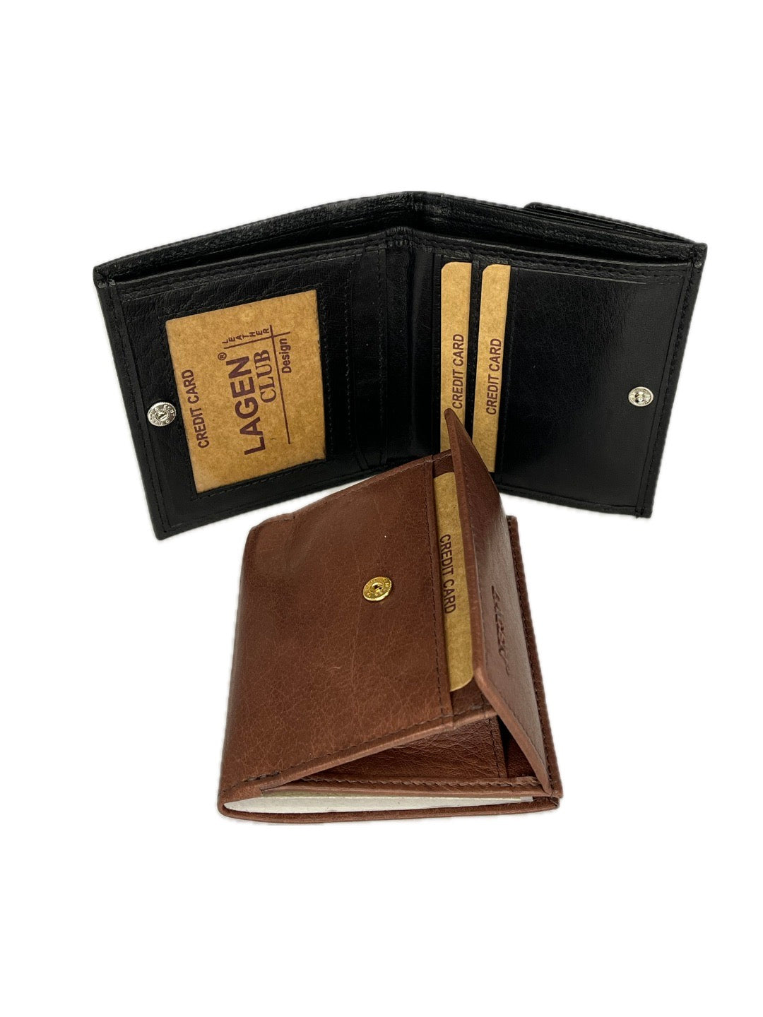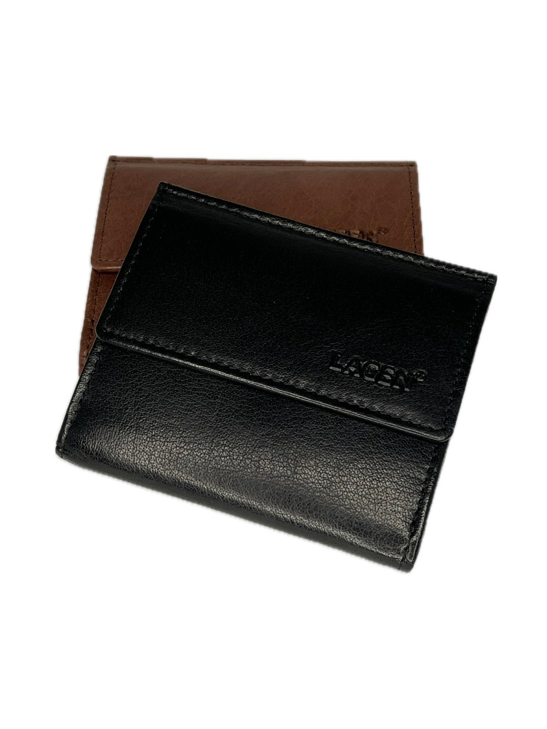 Malá kožená peněženka na cesty. Jedna přihrádka na bankovky, čtyři na karty a jedna na drobné.