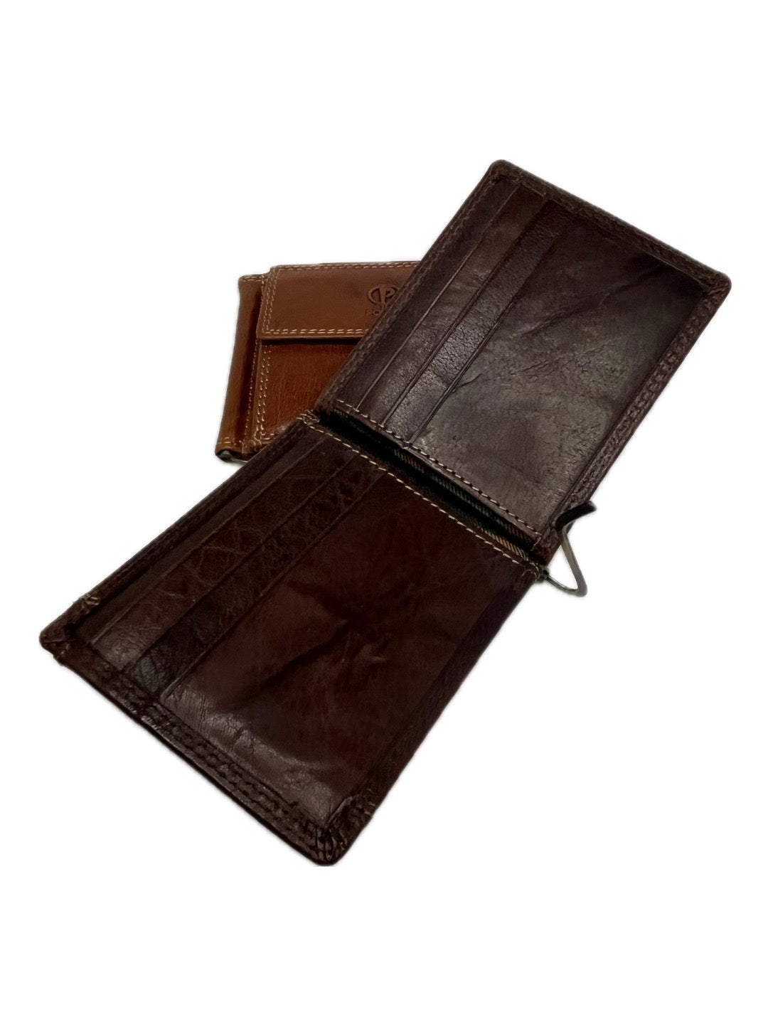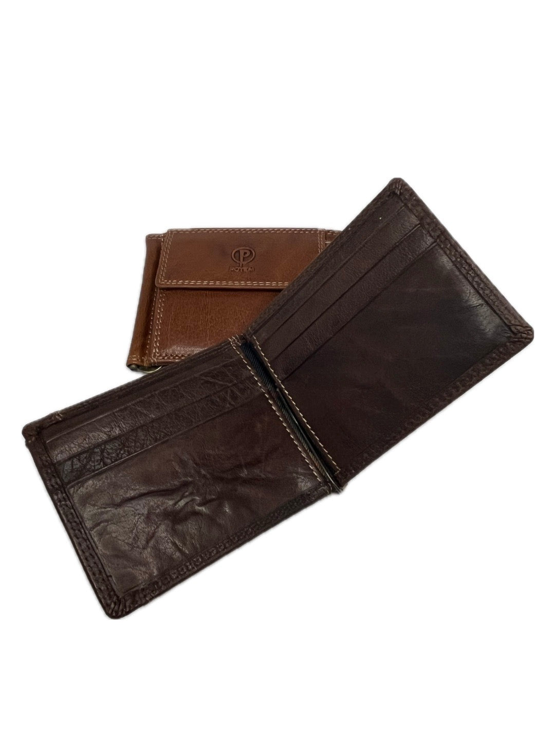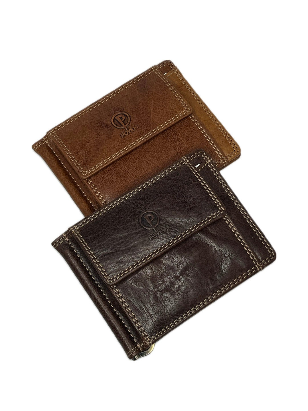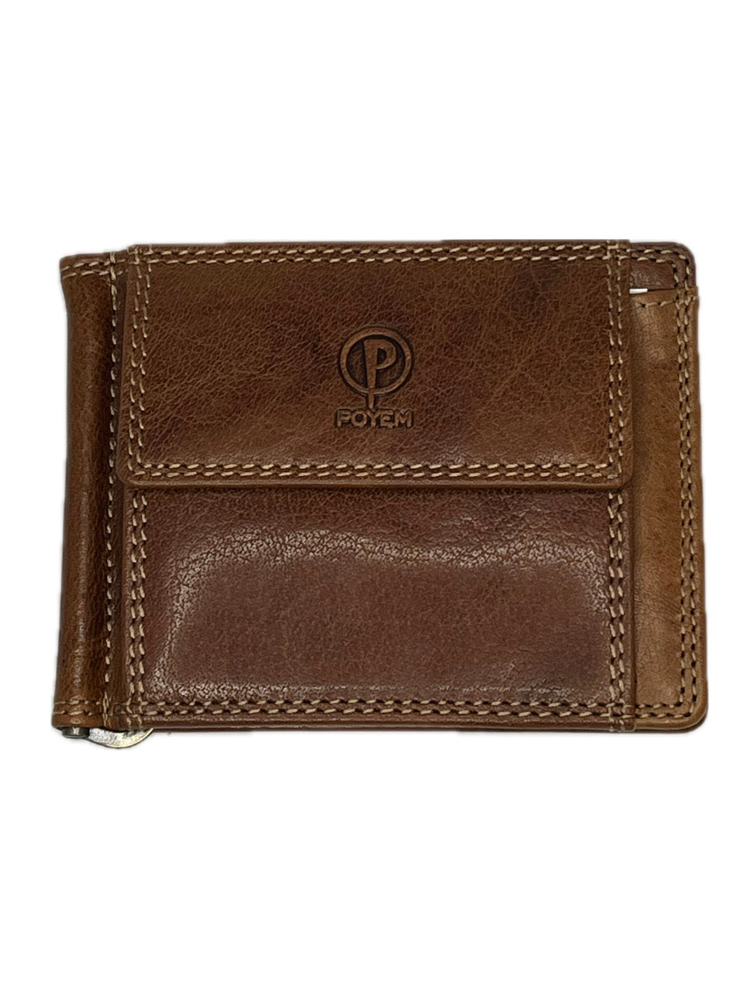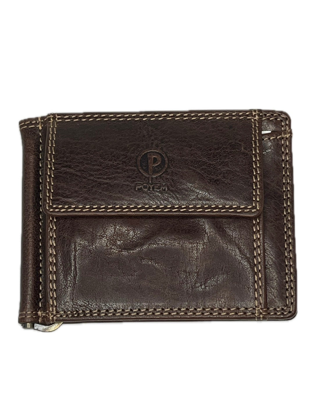 Pánská kožená dolarovka značky Poyem má přední kapsičku na drobné, která se otevírá na patent. Dolarovka také disponuje šesti přihrádkami na karty. Orientace na šířku.