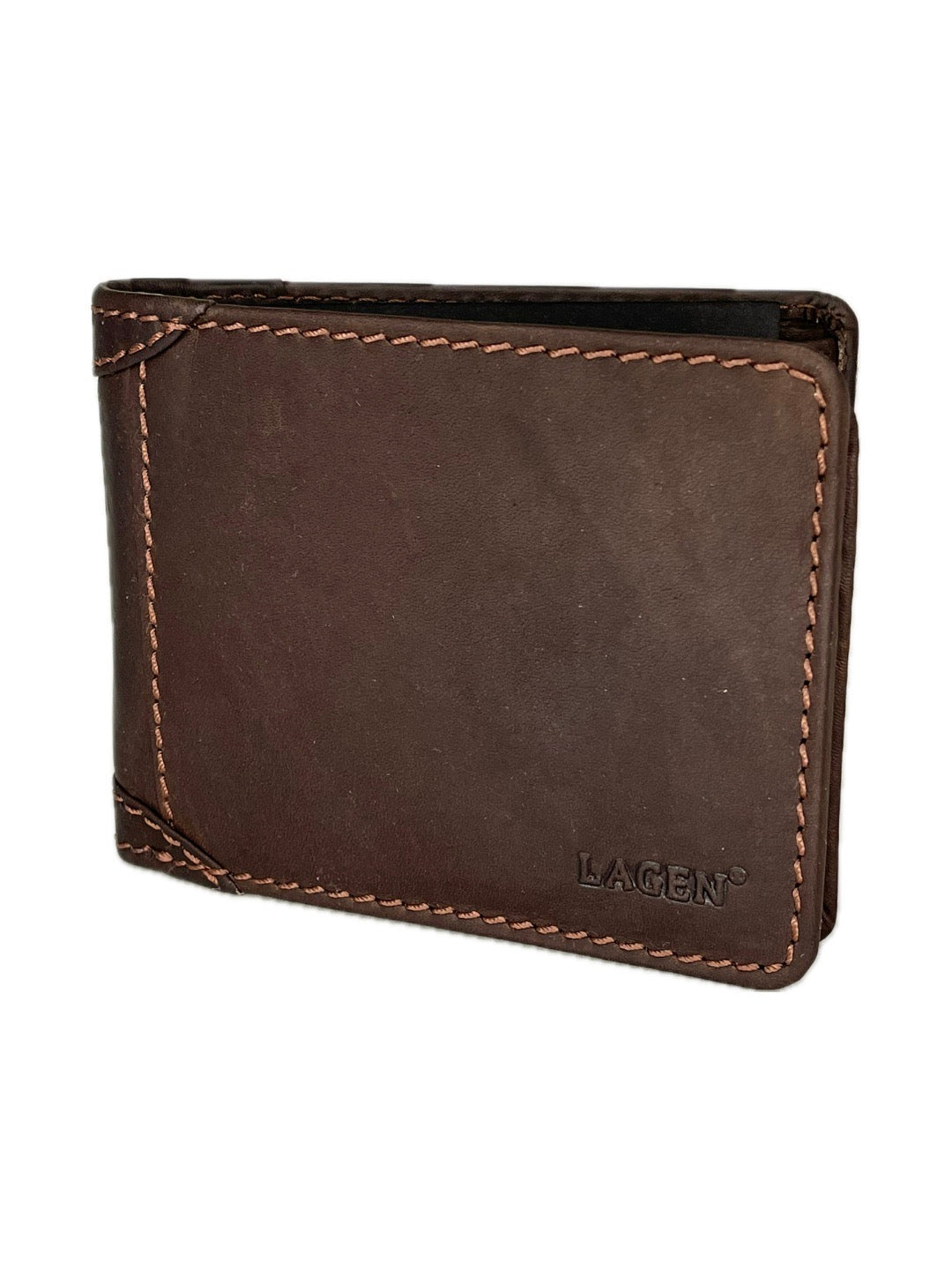 Pánské peněženky Lagen nabízí kromě elegance, ruční výrobu a nekompromisní kvalitu. Uvnitř najdete prostor pro uložení bankovek, dokladů, kreditních karet a mincí. Tato peněženka je situovaná na šírku.