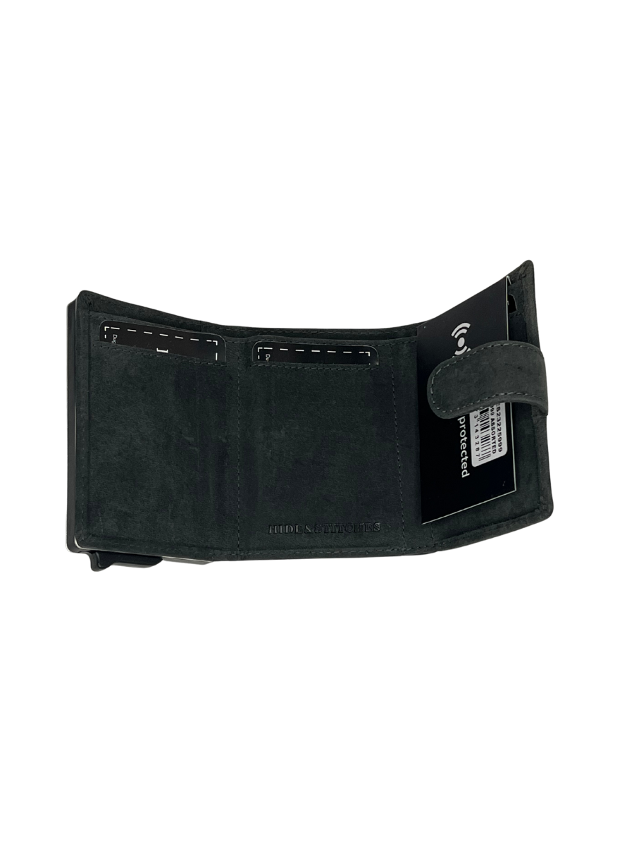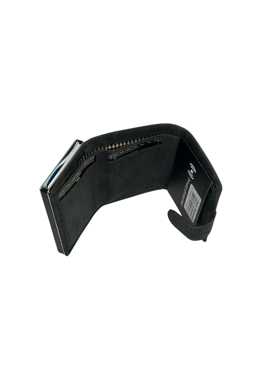 Mnoho mužů místo klasických peněženek upřednostňuje tato pouzdra na platební karty a doklady, doplněnou pouze přihrádkou na bankovky a malou kapsičkou na mince. Toto pouzdro je ve zpracování s pravou kůží upravenou broušením. Pouzdro má funkci ochrany karet proti zneužití.
