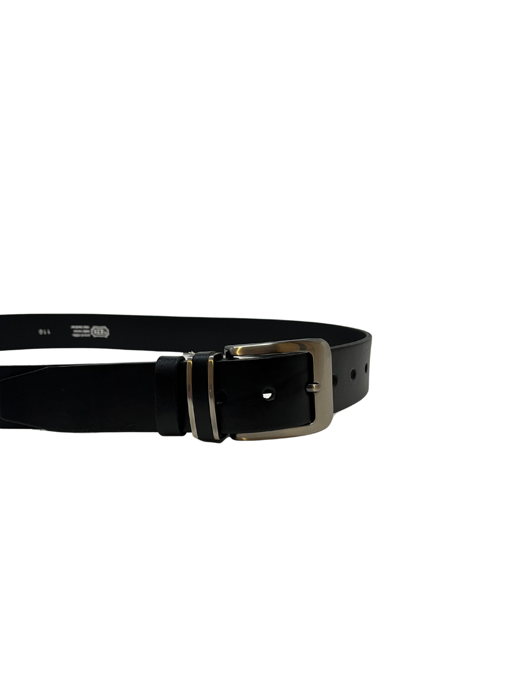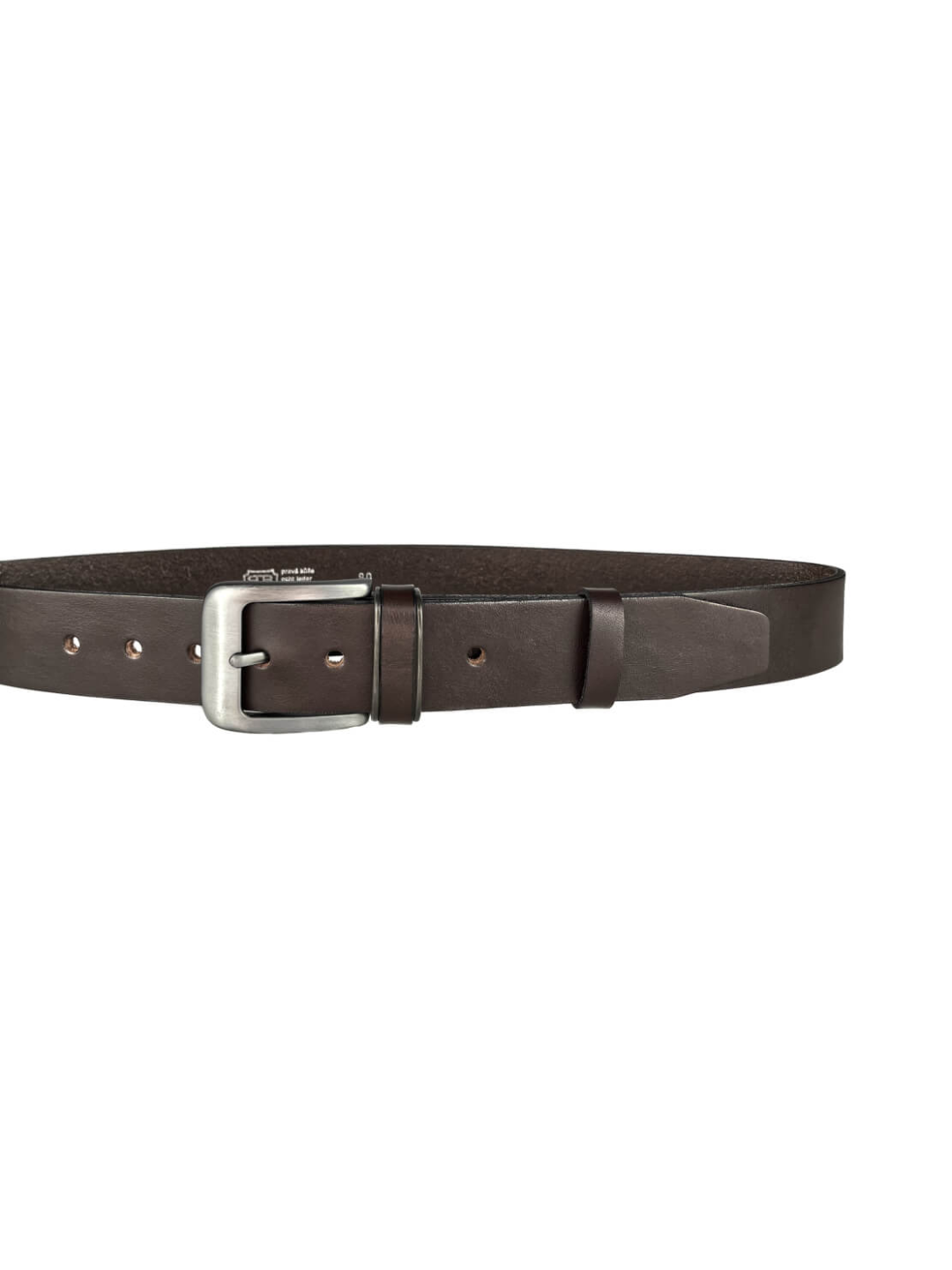 Opasek o šířce 40 mm má sponu s povrchovou úpravou stíraný zinek. Tato spona neobsahuje nikl. Pásek je vyrobený z tmavě hnědé, nebo černé usně.