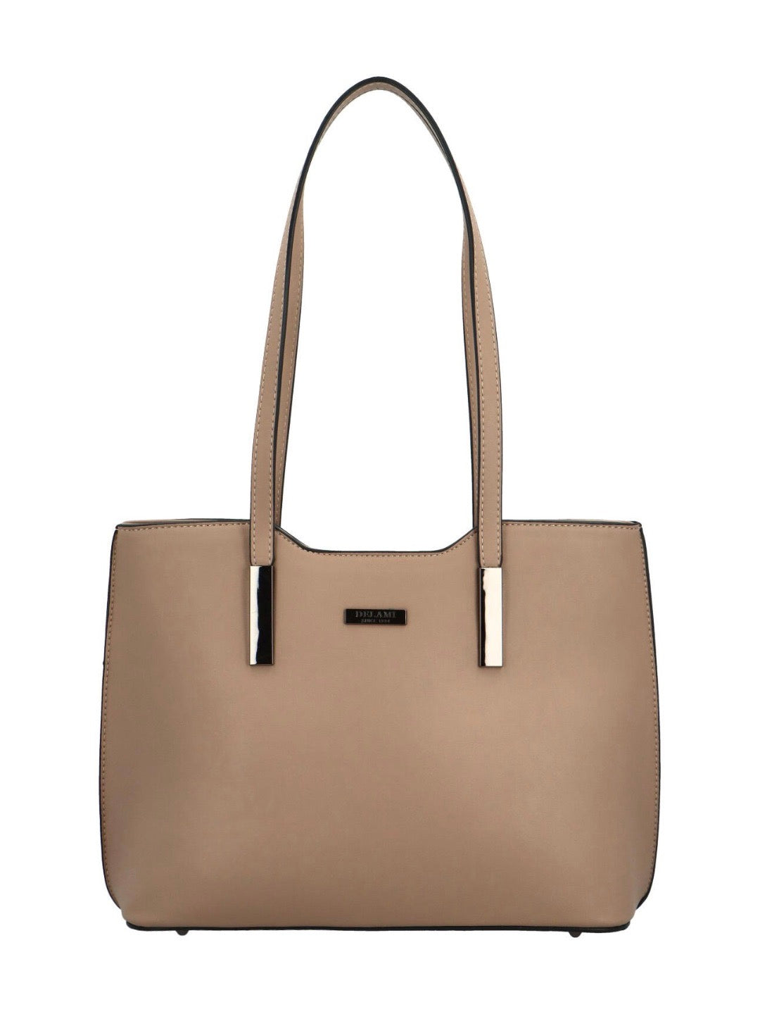 Dlouhé, pevné uši, hlavní prostor je zajištěný zipem, uvnitř středová zipová kapsička i menší kapsičky v podšívce. Na zadní straně poslední úložný prostor uzavíratelný zipem. Nadčasový design, lehkost, jemnost i pevnost kabelky, to vše berte jako její přednost. Ve spodní části kabelka disponuje kovovými nožičkami, proti poškrábání kabelky. Stříbrné doplňky a logo značky Delami v přední části, oživí tento kousek.